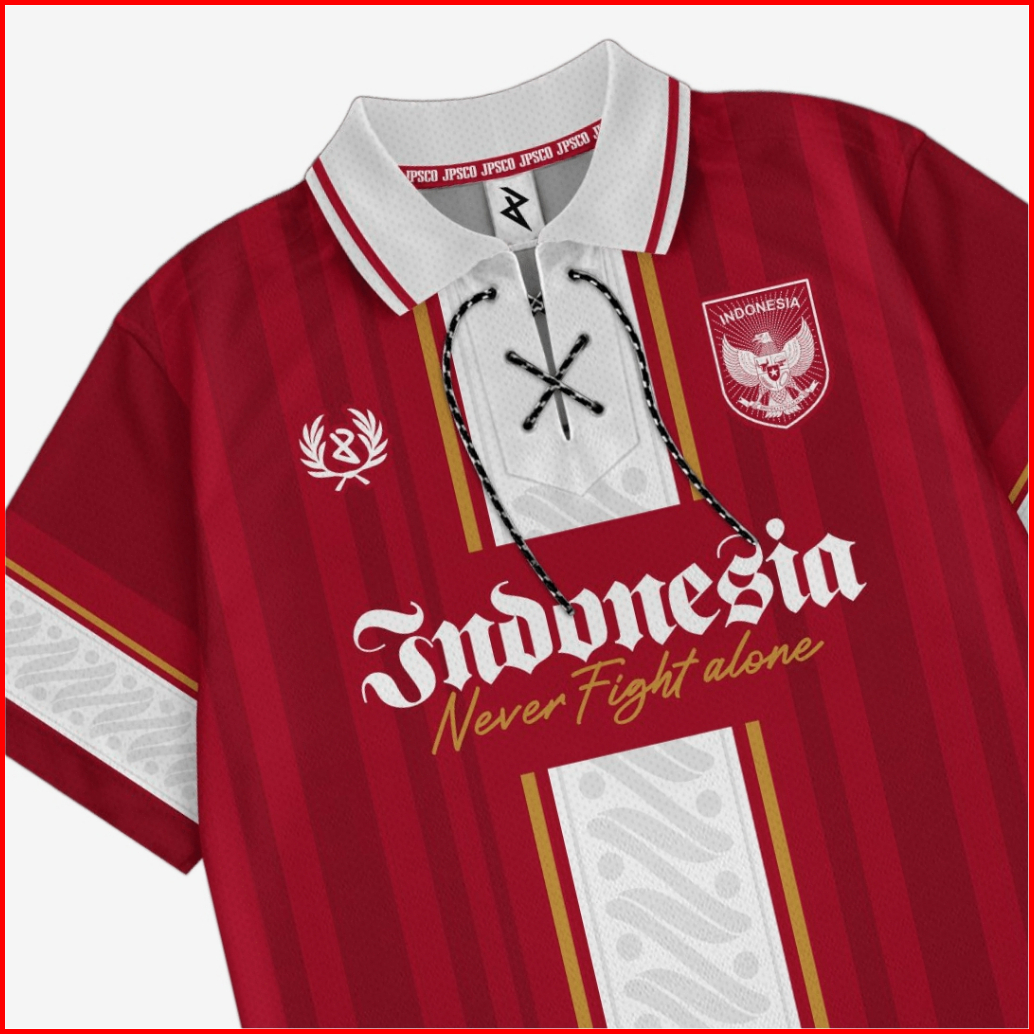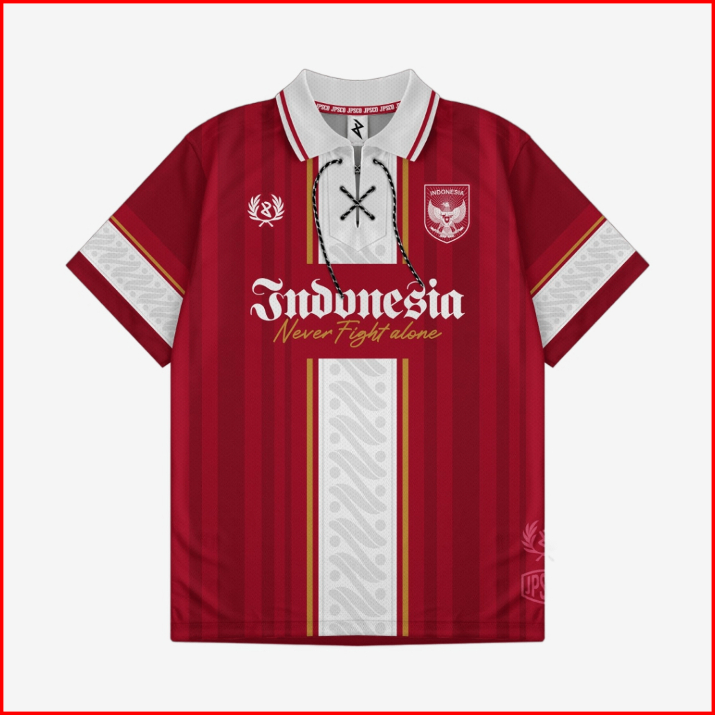 Jersey Indo Never Fight Alone Kaos Timnas Indonesia Retro Olahraga Sepakbola Futsal Dryfit