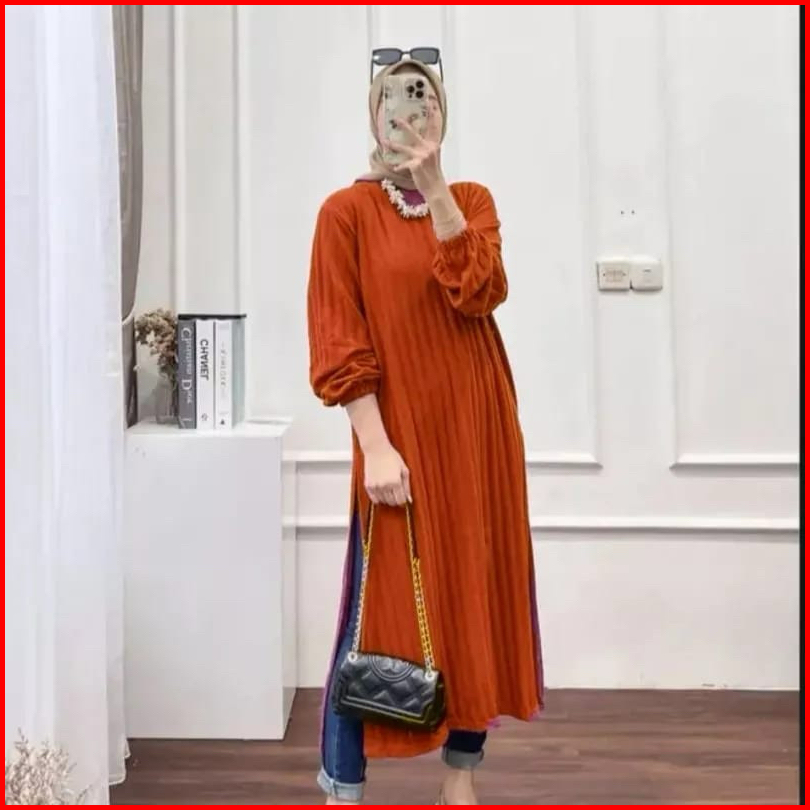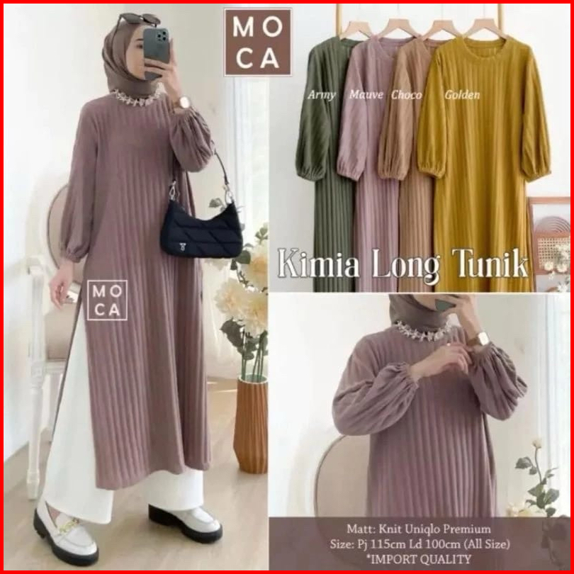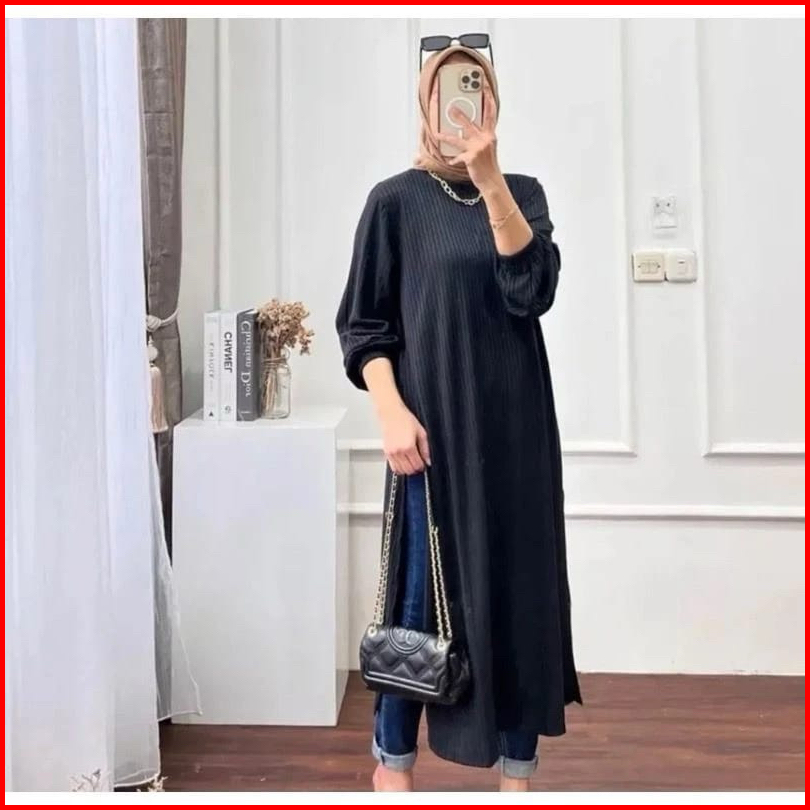 Kimia Long Tunik Hornet Premium Tania Tunik Panjang Belah Samping Lengan Karet