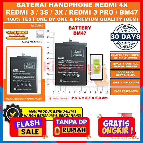 [Mall] Baterai Redmi 3, 3S, 3 Pro, 3X, 4X BM47 Original OEM Battery Batrai Batre Handphone Hp BM 47 Ori