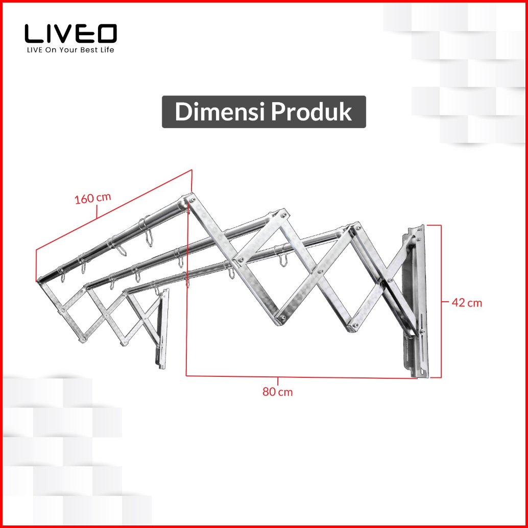 Liveo Jemuran Dinding Baju Stainless Steel Lipat Gantung Liveo