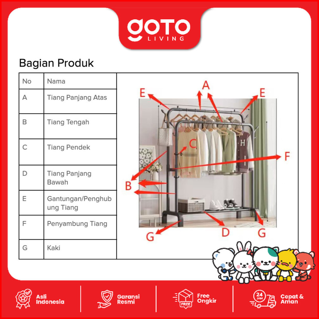 Goto Spiko Stand Hanger Rak Besi Gantungan Baju Pakaian