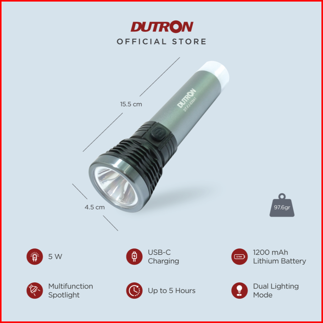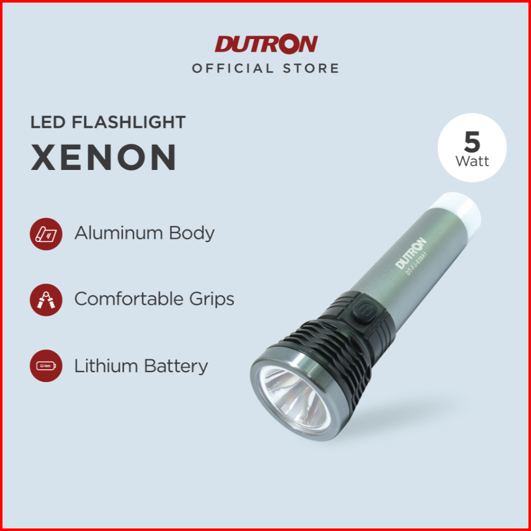 Dutron Senter Led Xenon Alumunium Hitam Slim 5w 4 Led