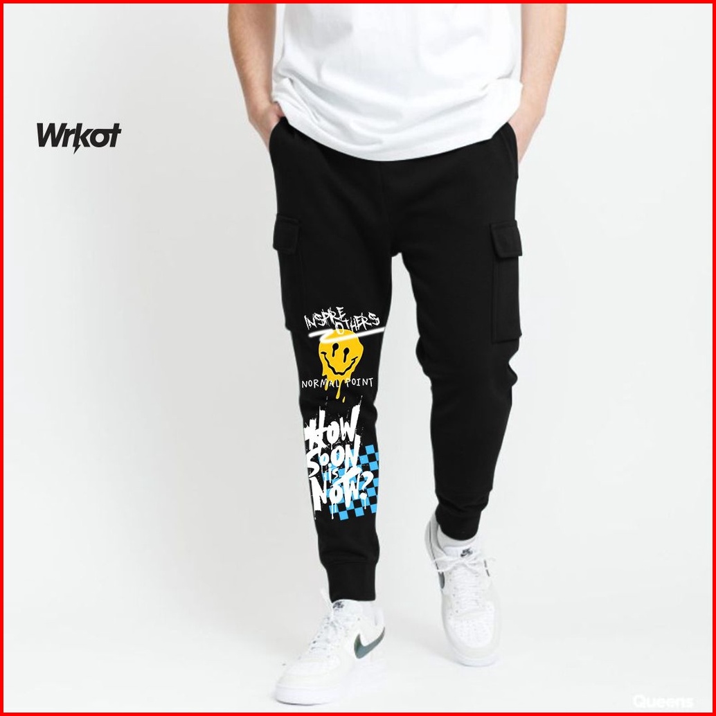Workout Streetwear Celana Jogger Pants Cargo Fake Smile Black Pakaian Pria Dan Wanita