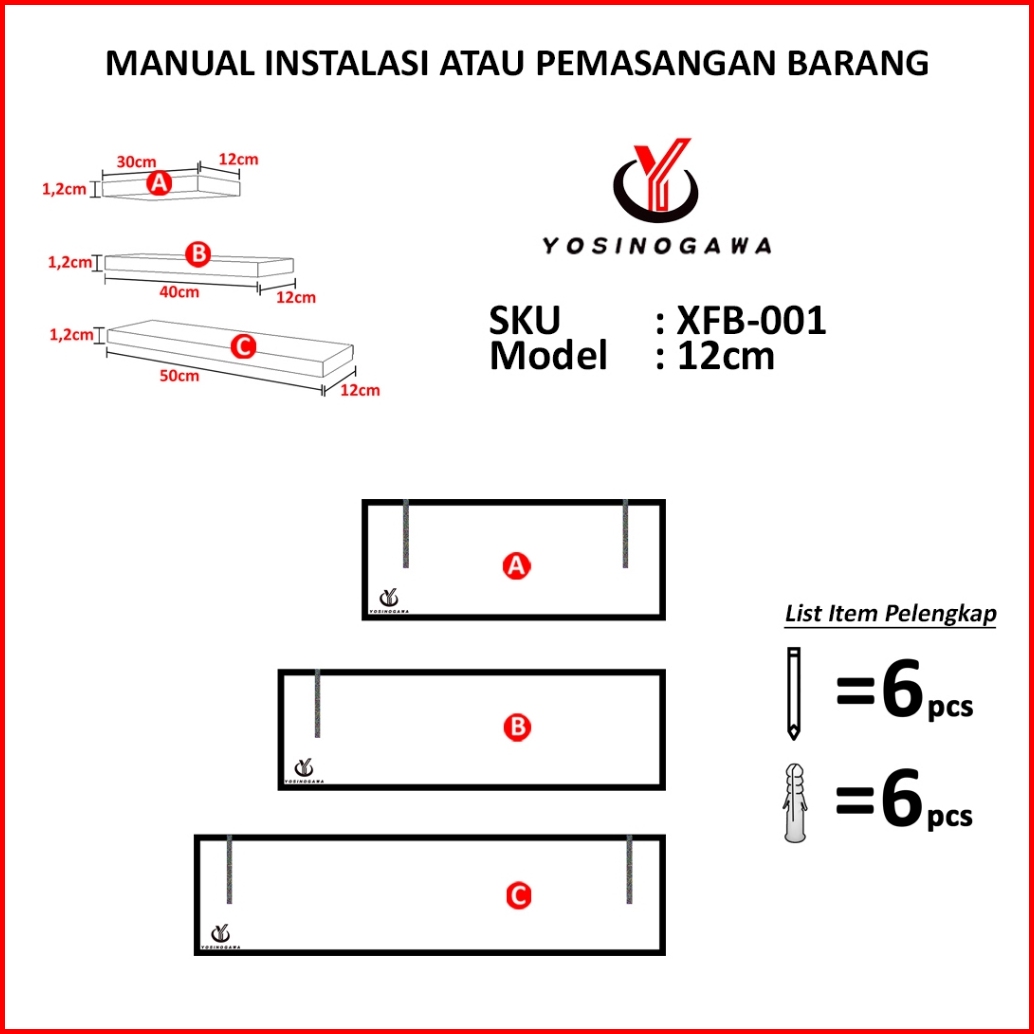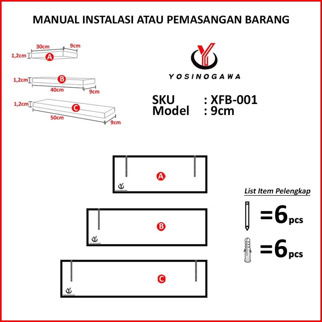 Yosinogawa - Rak Dinding Set 3 Pcs Dekorasi Ambalan Kamar Ruang Tamu