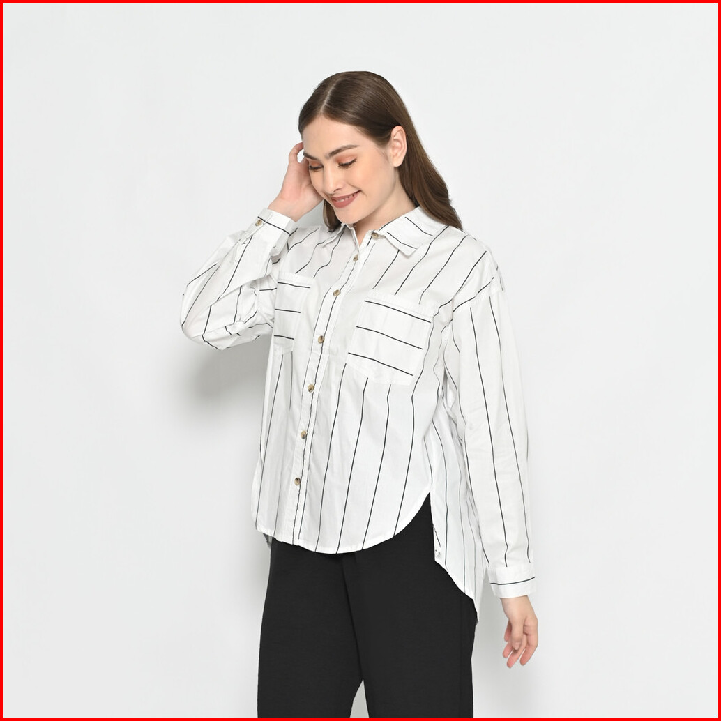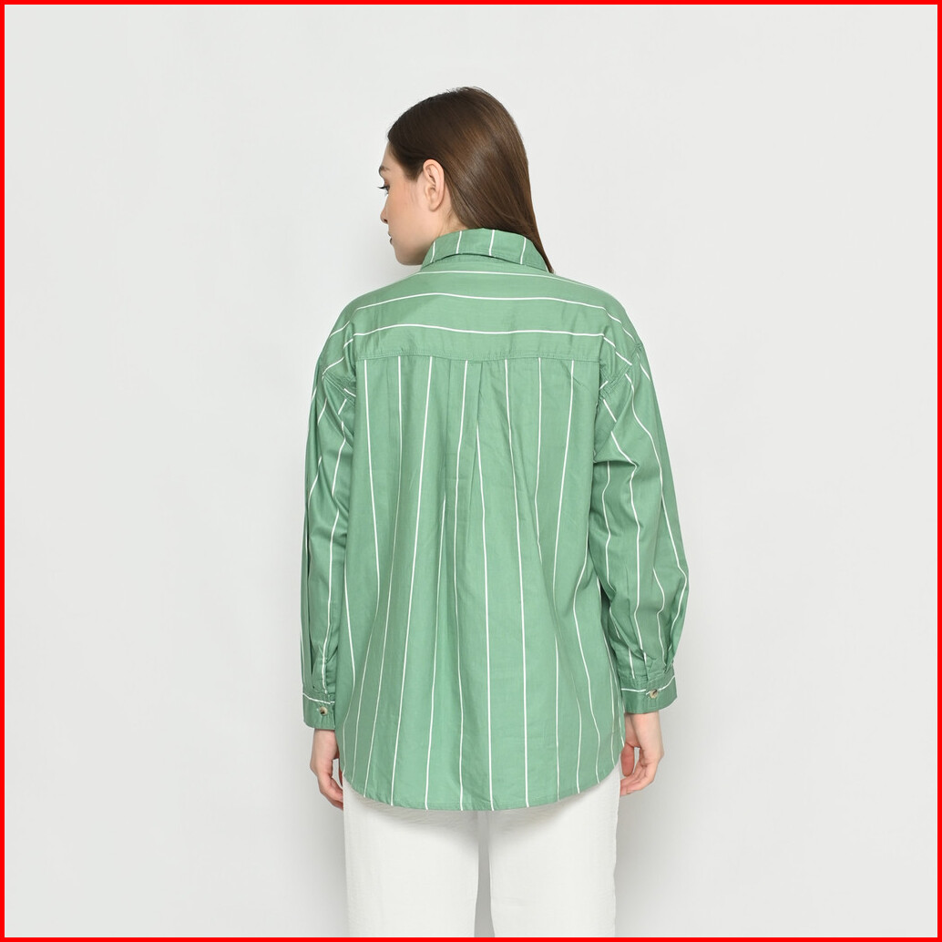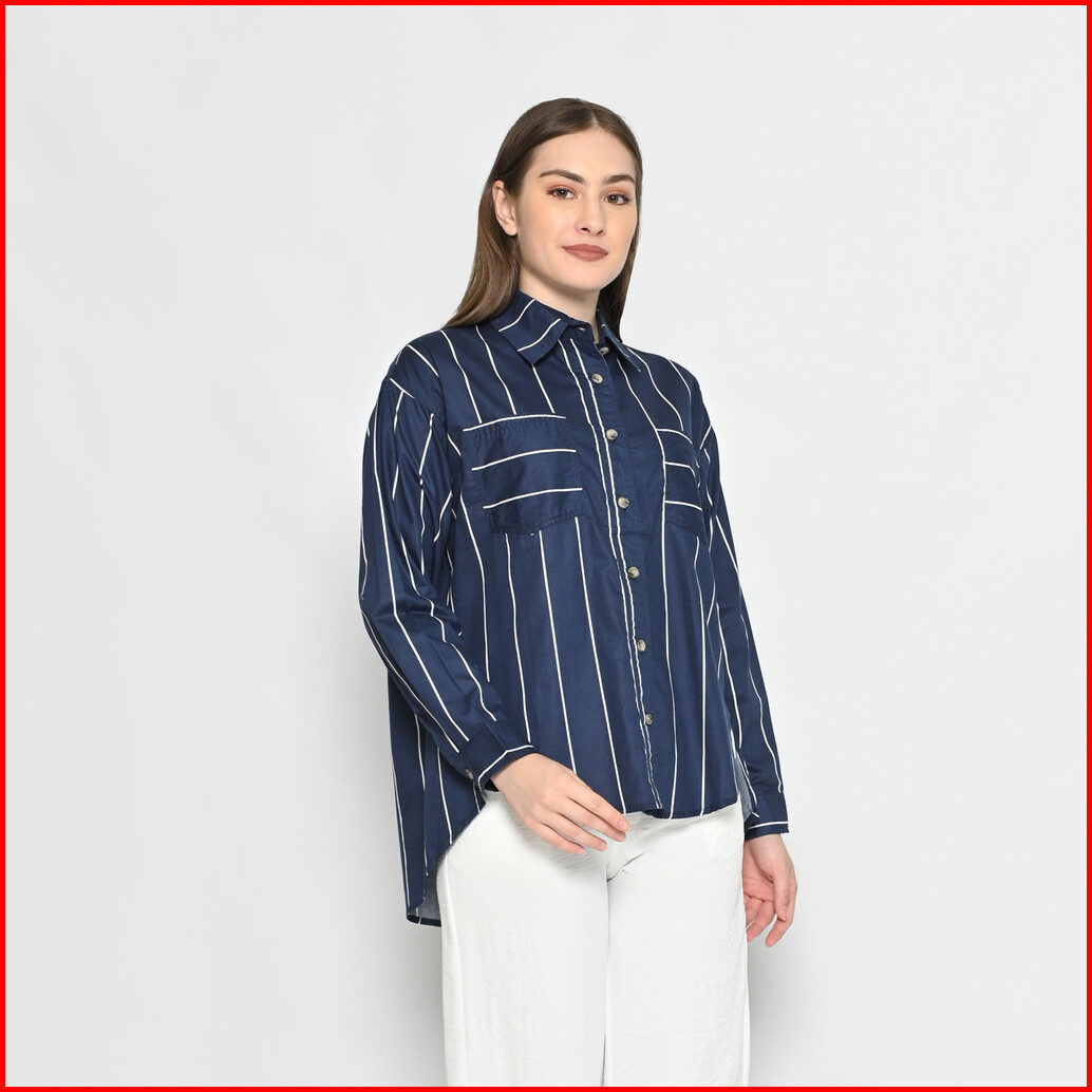 Queentin Kemeja Oversize Casual Wanita 0189 Katun Turkey Salur Lengan Panjang
