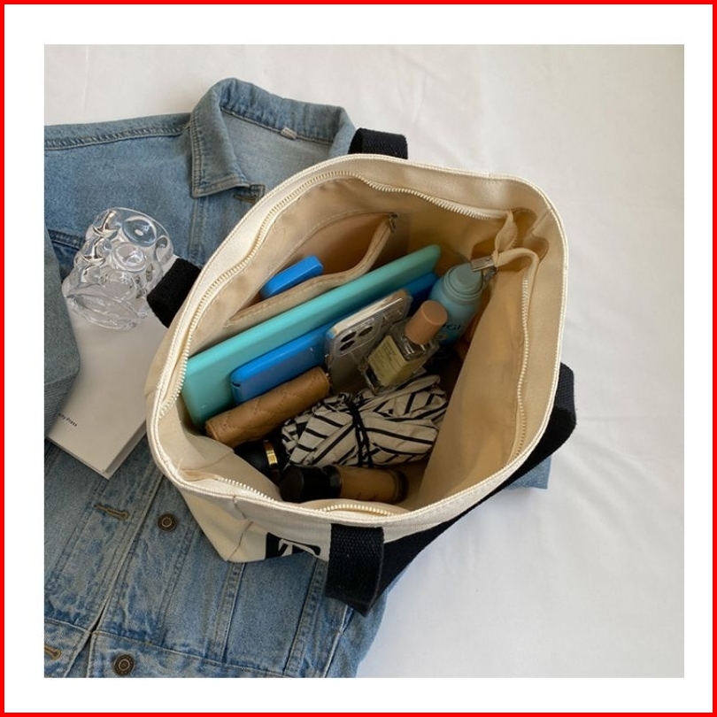 Rizkibag Gwk1 Totebag Kanvas Wanita Pakai Resleting