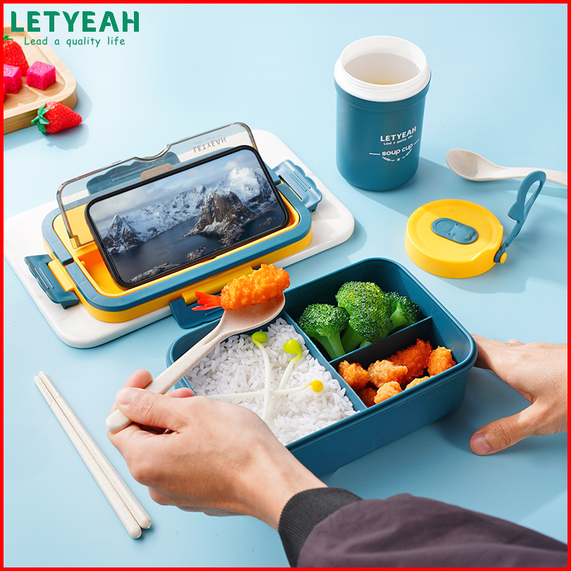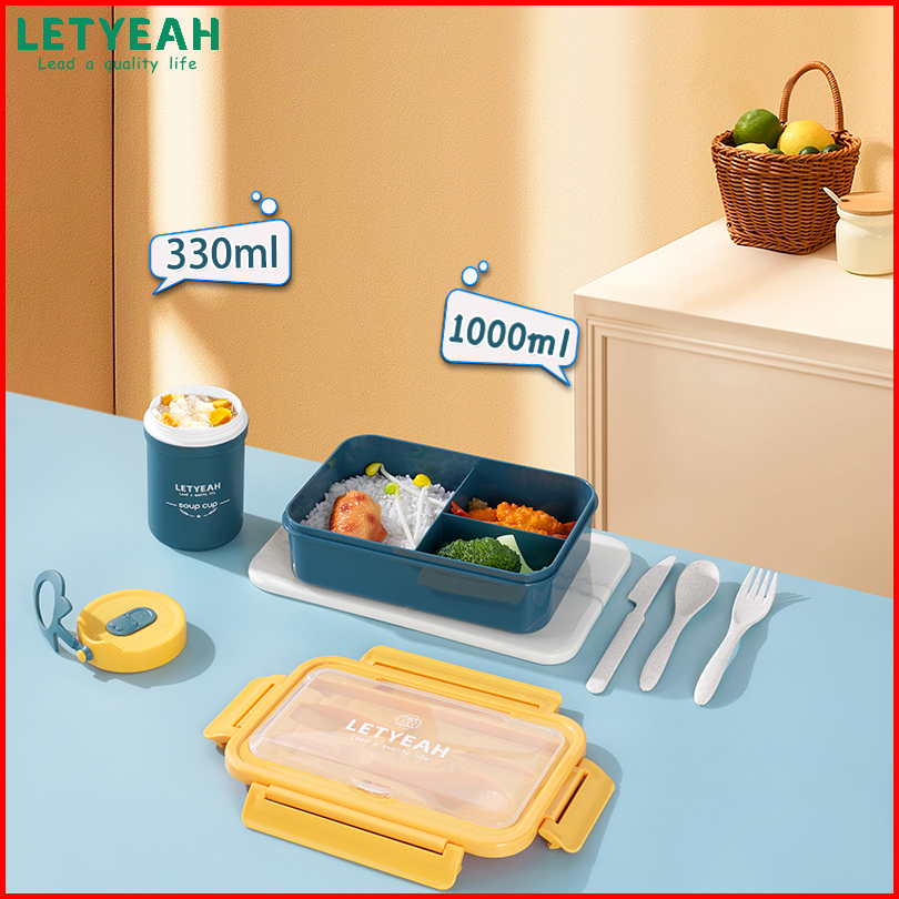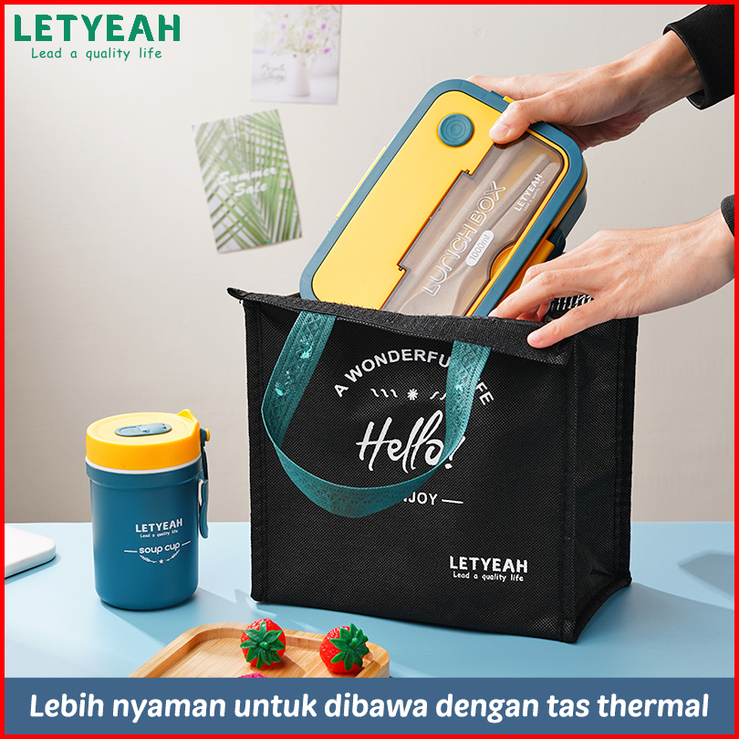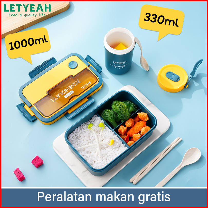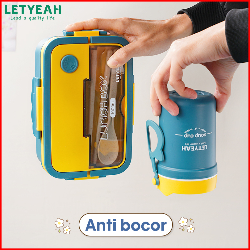 3pcs Set Letyeah Kotak Bekal Makan Set Anak Mangkuk Sup 330ml Lunch Box Set 1000ml Bento Portabel Tas Bekal Set