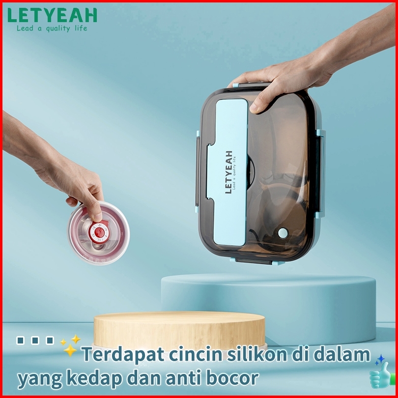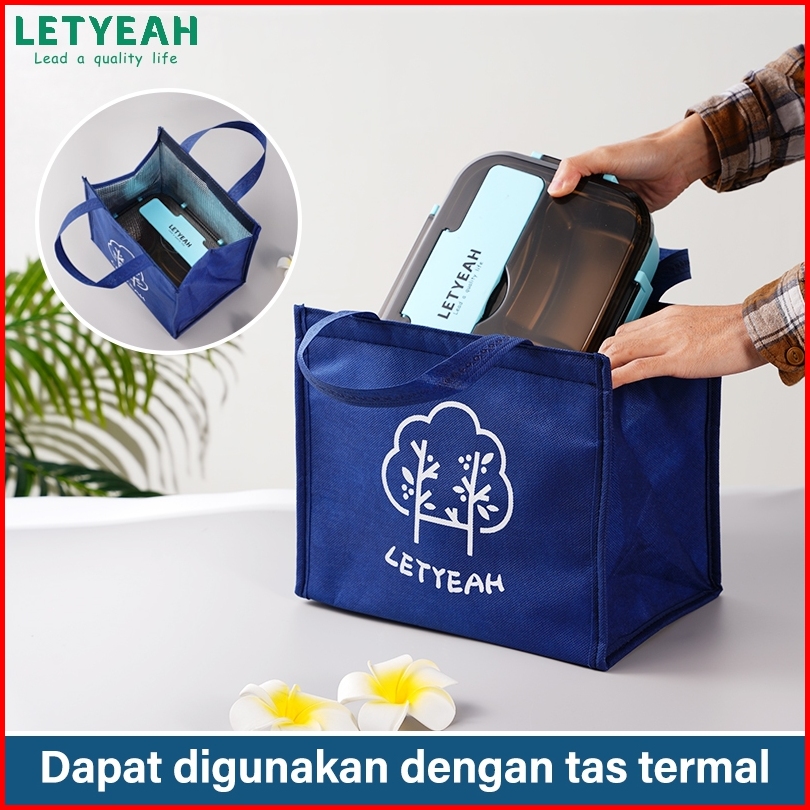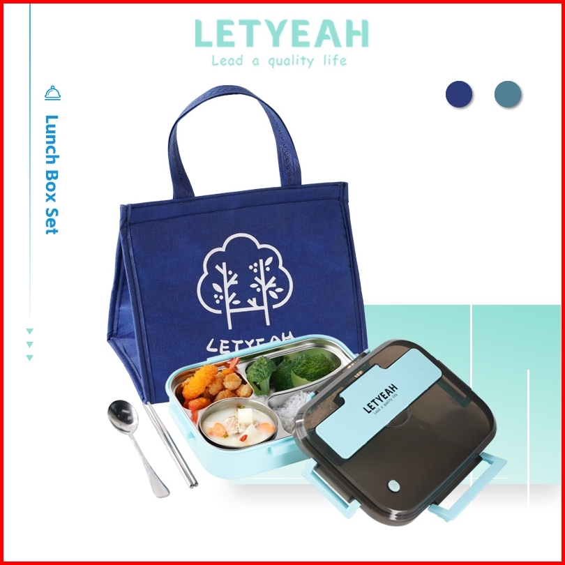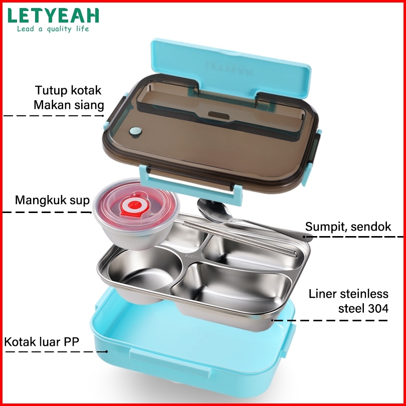 Sus304 Letyeah Lunch Box Set 304 Stainless Steel 4 Sekat Kotak Bekal Makan 1300ml Gratis Mangkuk Sup Dan Tas Bekal