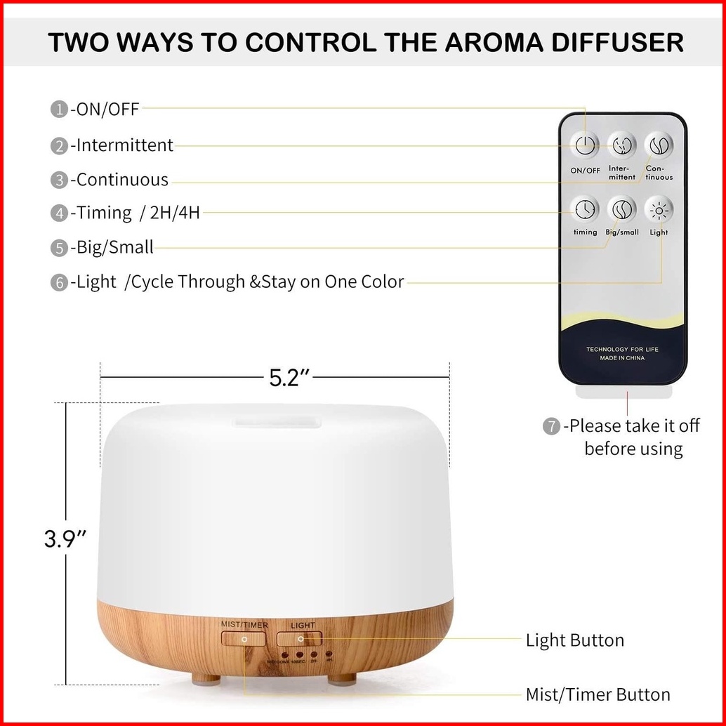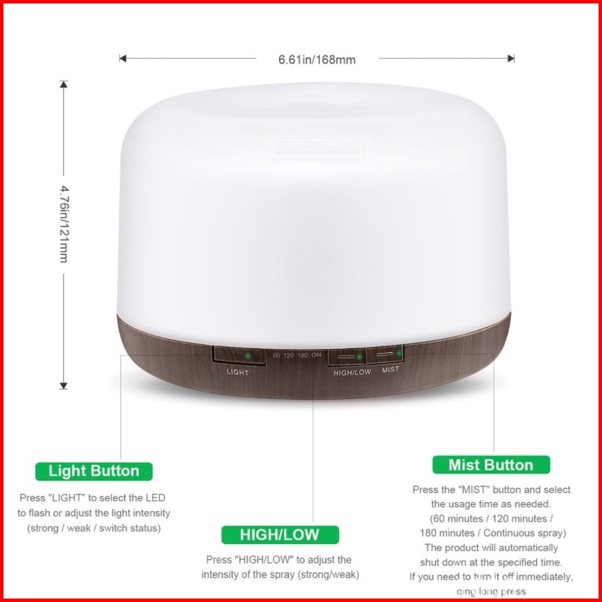 Cinseer Humidifier Diffuser Air Alat Aromaterapi 2 Pilihan Ukuran 300ml Dan 500ml Model Alas Dengan Remote Dan 7 Warna L