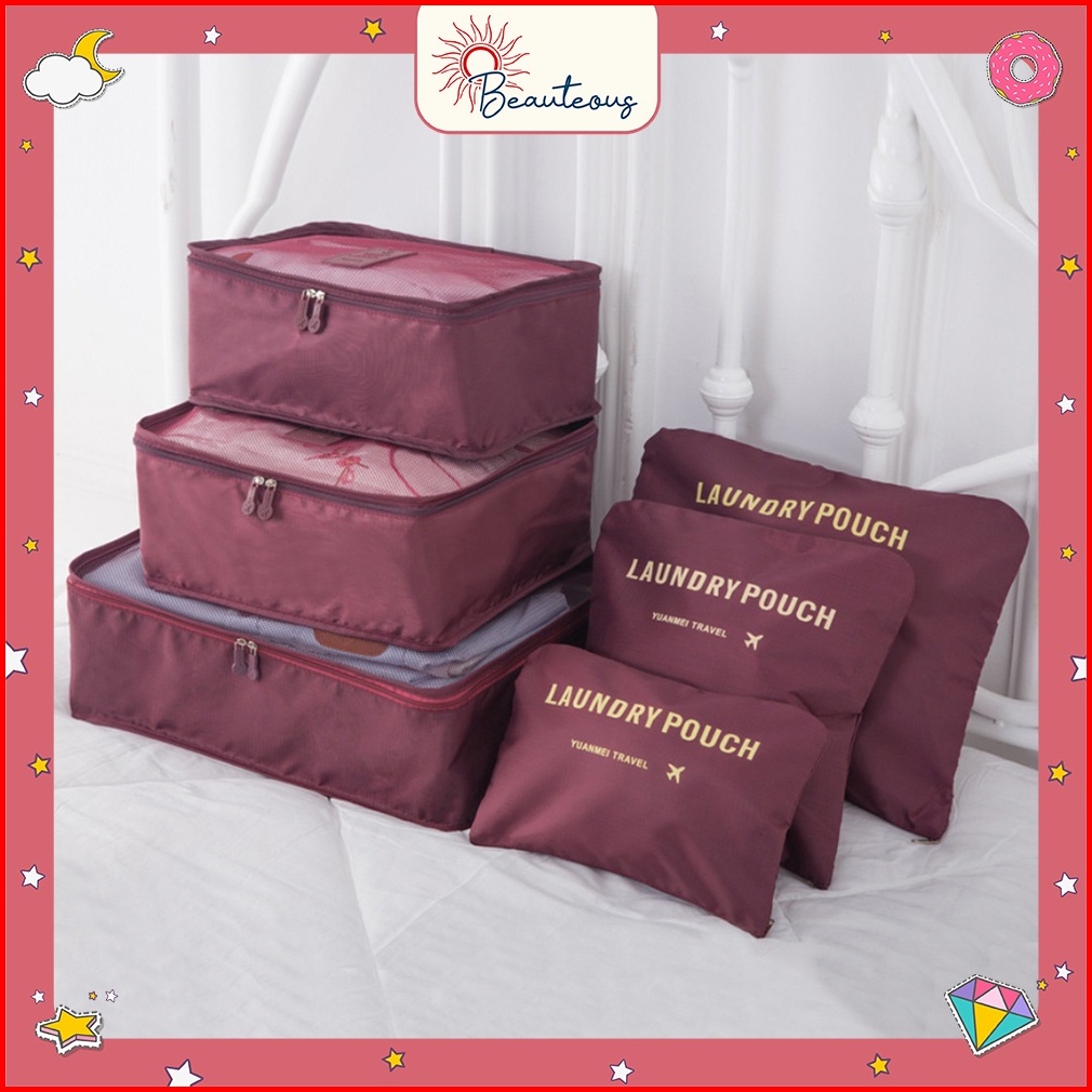 Travel Bag Set 6 In 1 Storage Tas Penyimpanan Baju Koper Pouch Organizer Travelling