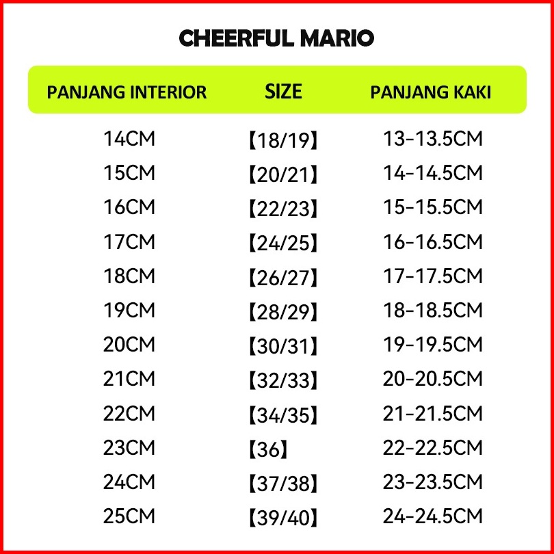Sepatu Sandal Cheerful Mario Anak Perempuan Laki Laki Import 1-7 Tahun Import Bahan Kain Sandal Mario