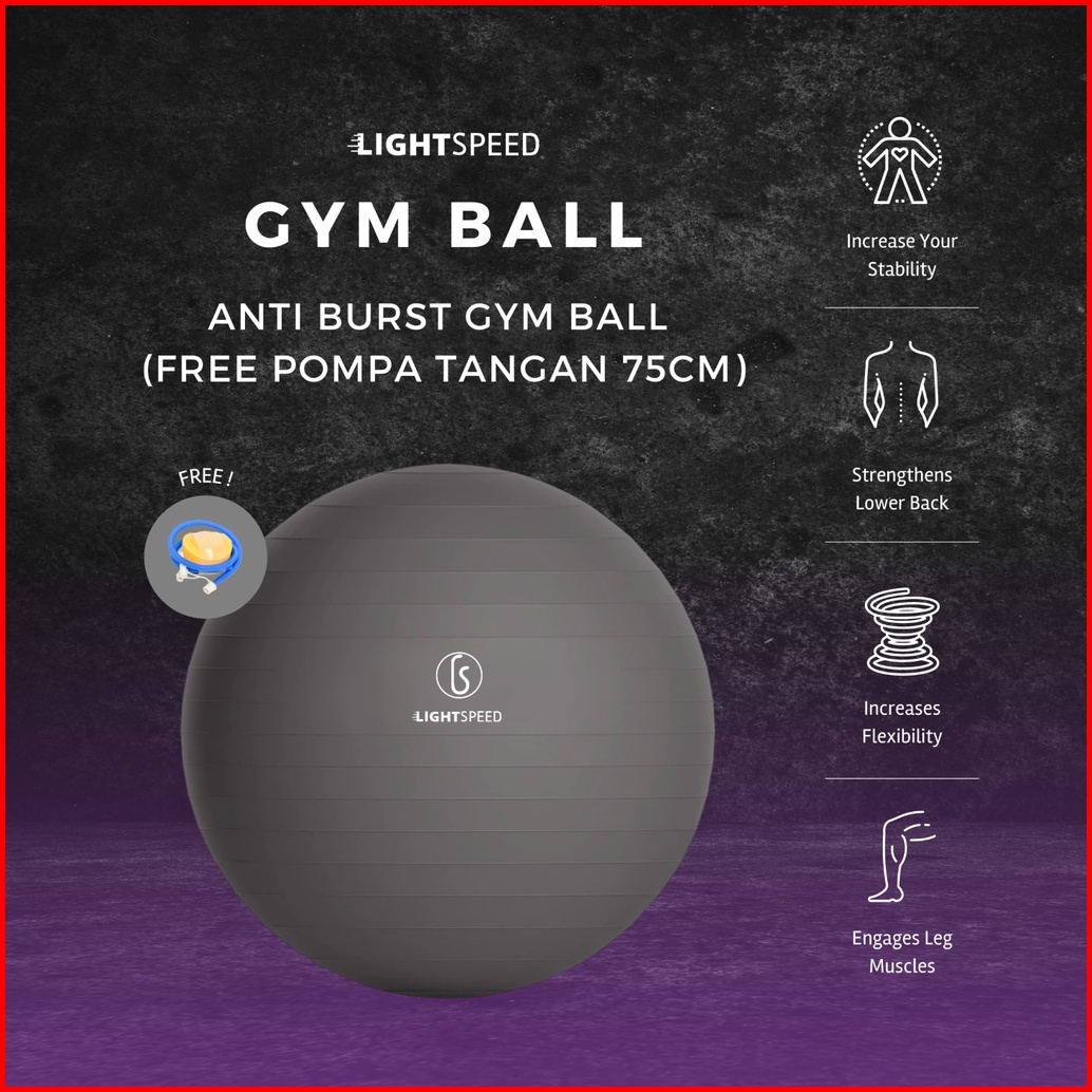 Lightspeed Anti Burst Gym Ball Include Hand Pump 75cm Antislip Ball Bola Gym