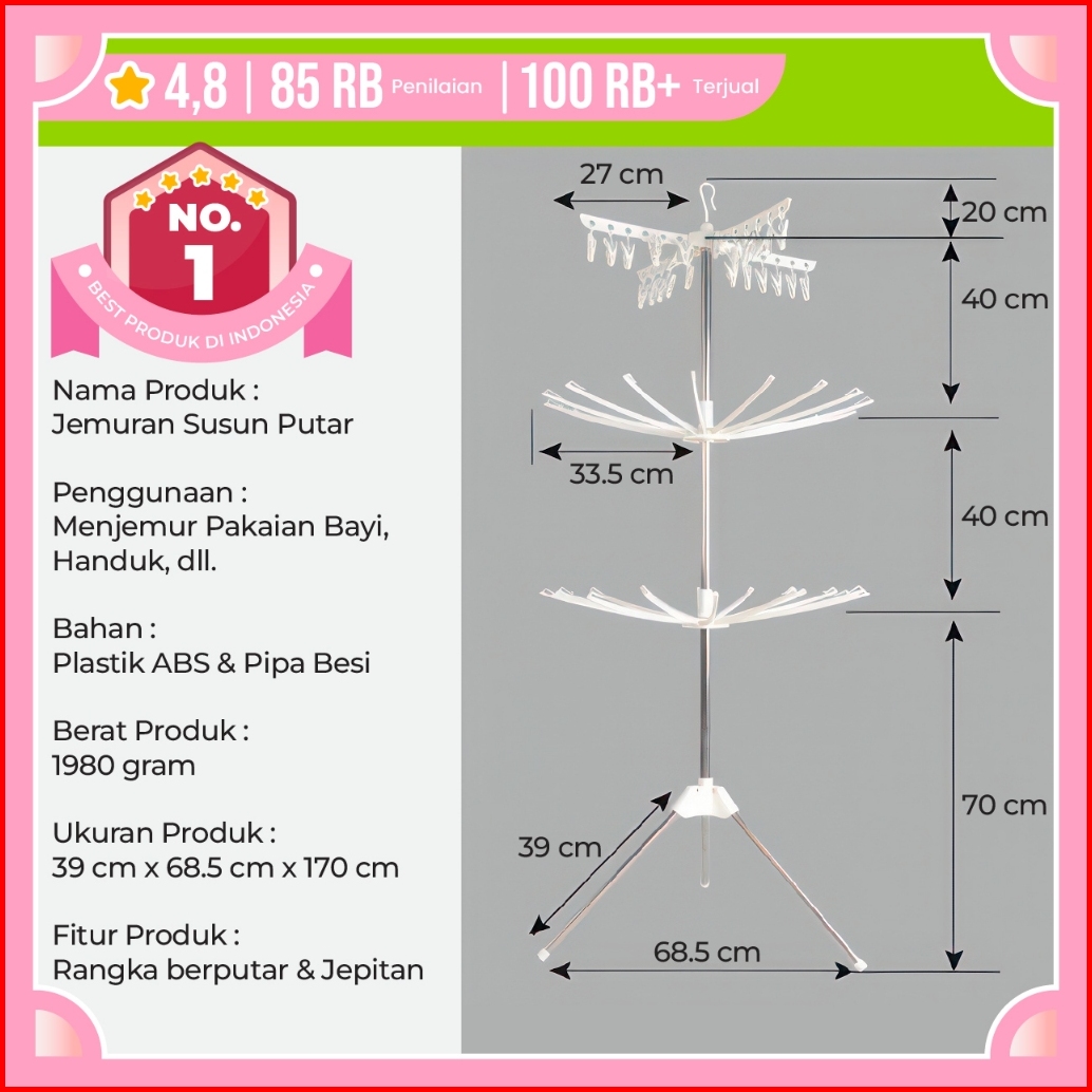 Jemuran Menara Jemuran Baju Lipat Rak Jemuran Pakaian Bayi Foldable Hanger