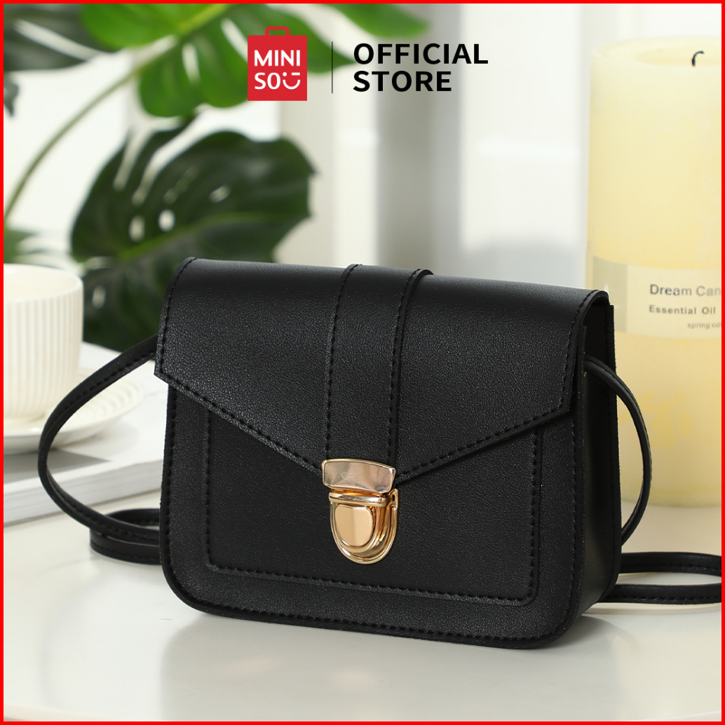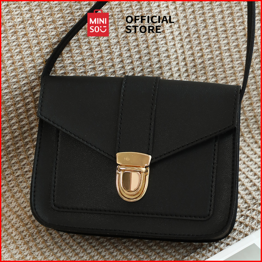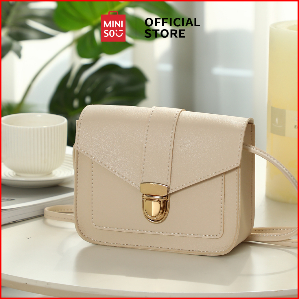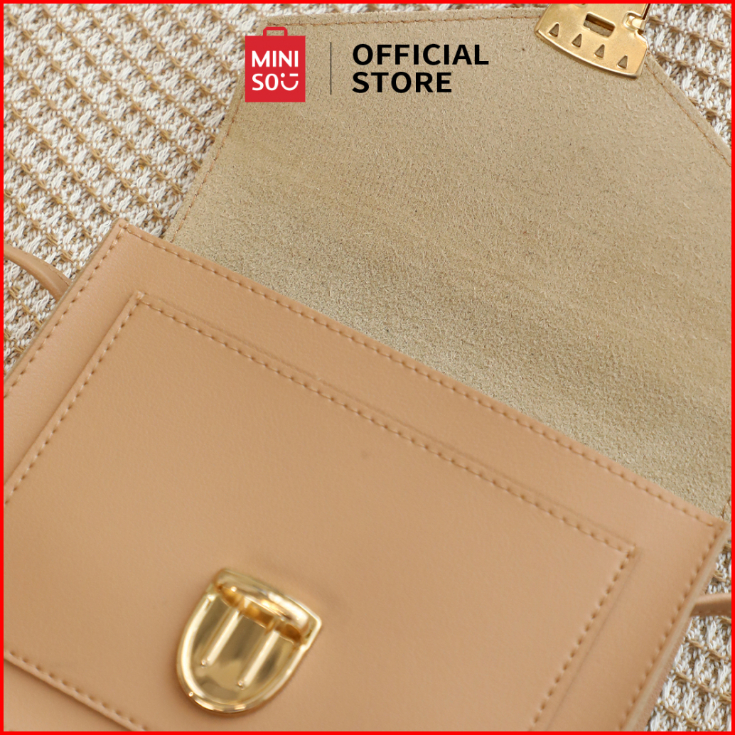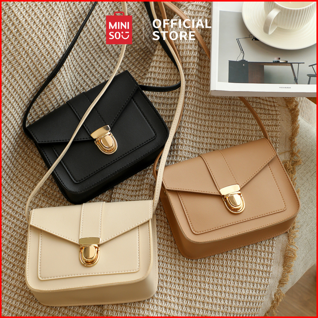 Miniso Crossbody Bag Tas Selempang Kulit Kerang Mode Kunci Logam Antik Tahan Aus Kapasitas Tinggi