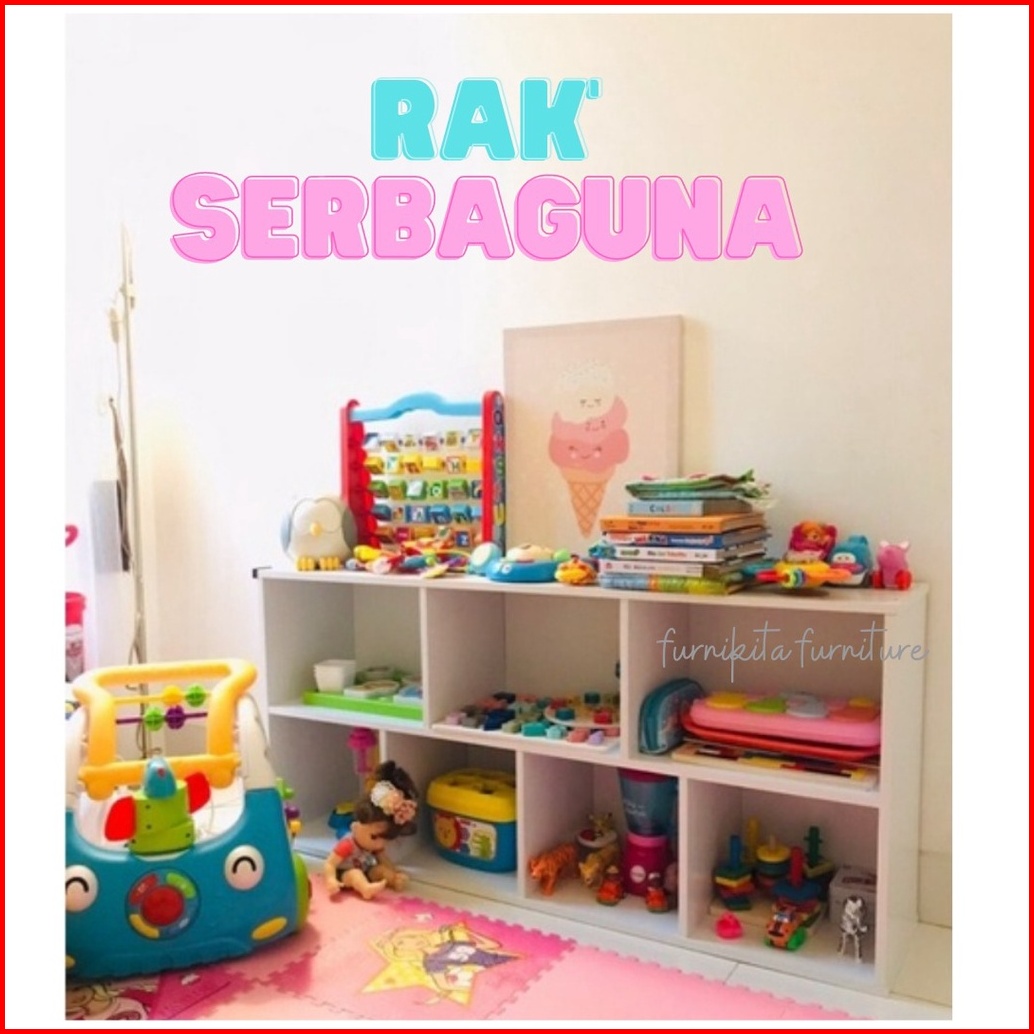 Rak Buku 7 Susun Rak Mainan Serbaguna White Cream Lemari Serbaguna