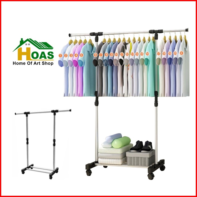 Hoas Rak Gantungan Baju Praktis Dan Modis Stand Hanger Single Rak Serbaguna Dengan 4 Roda