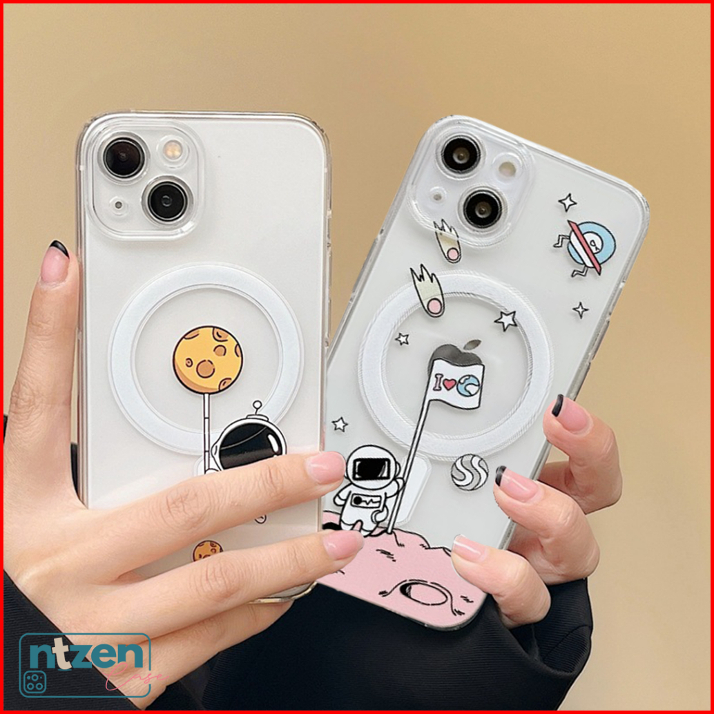 Case Iphone Slim Clear Magnetic Astronot 11 12 13 14 Pro Max Xr Xs 15 Pro Max