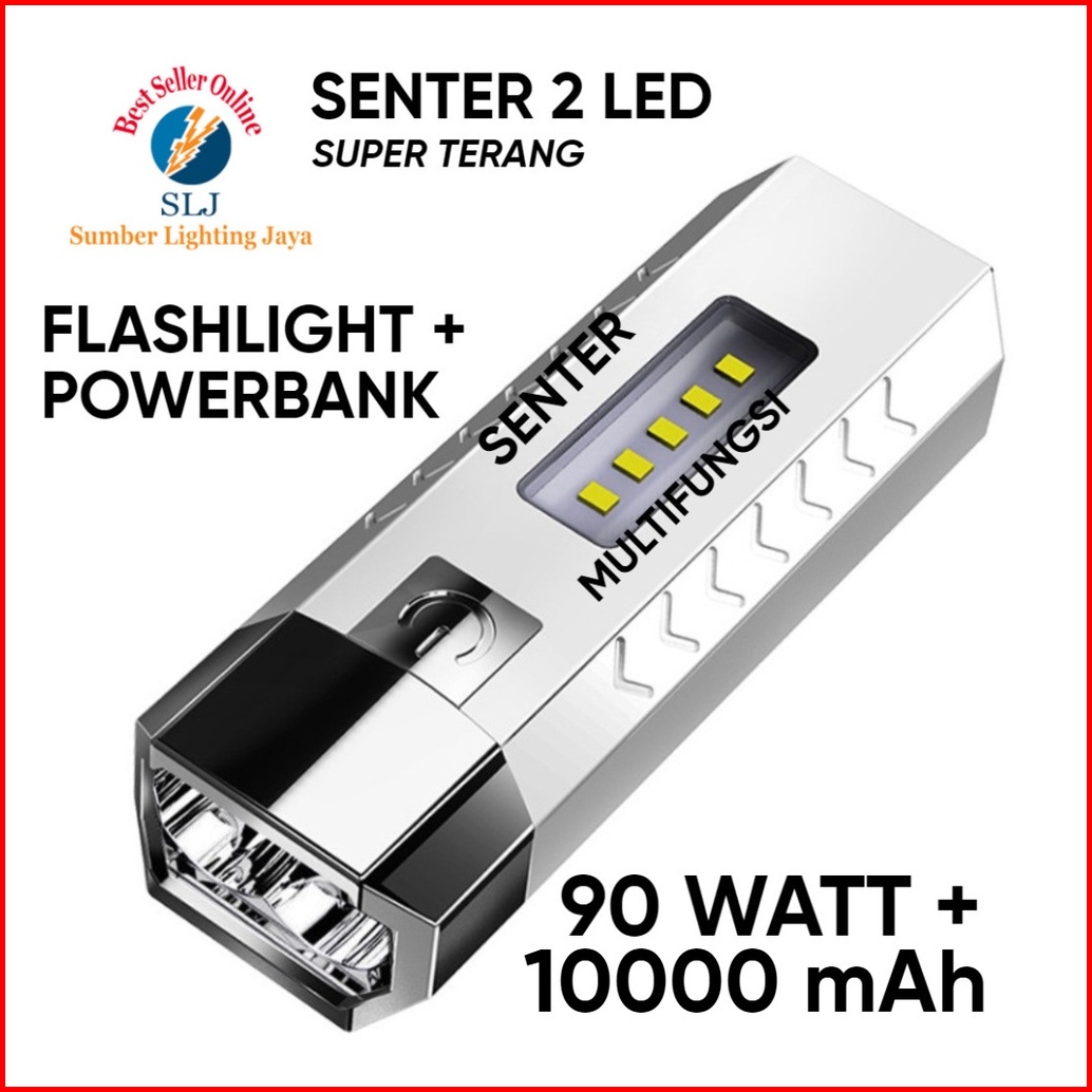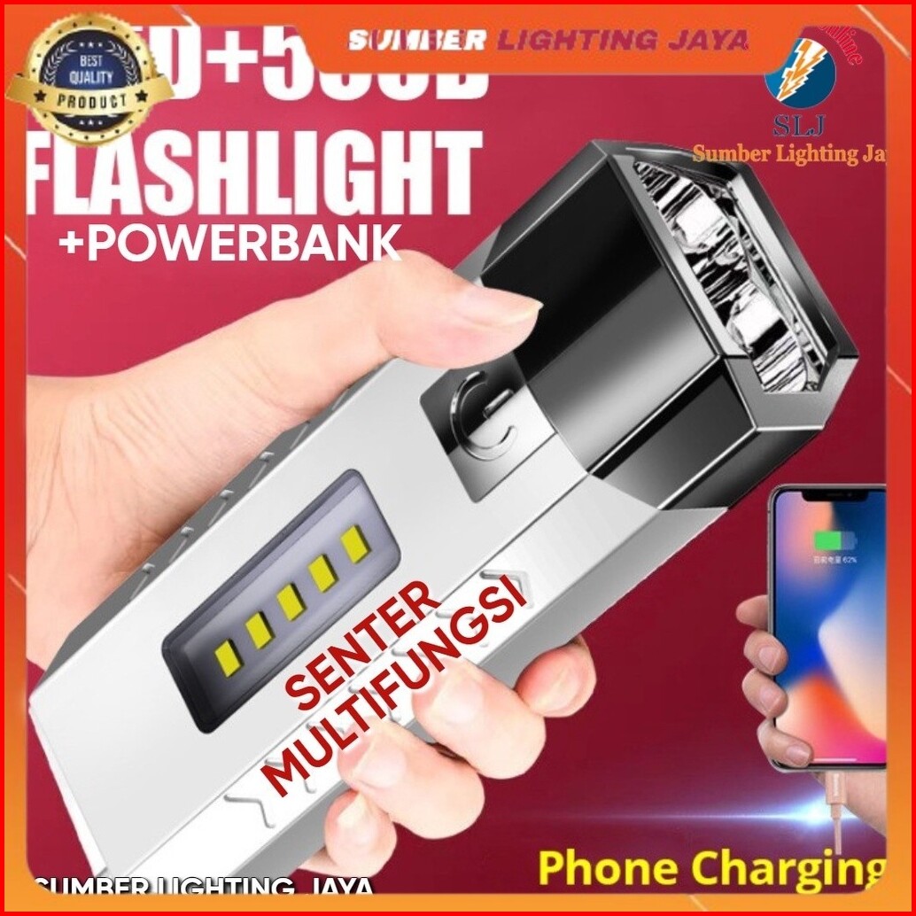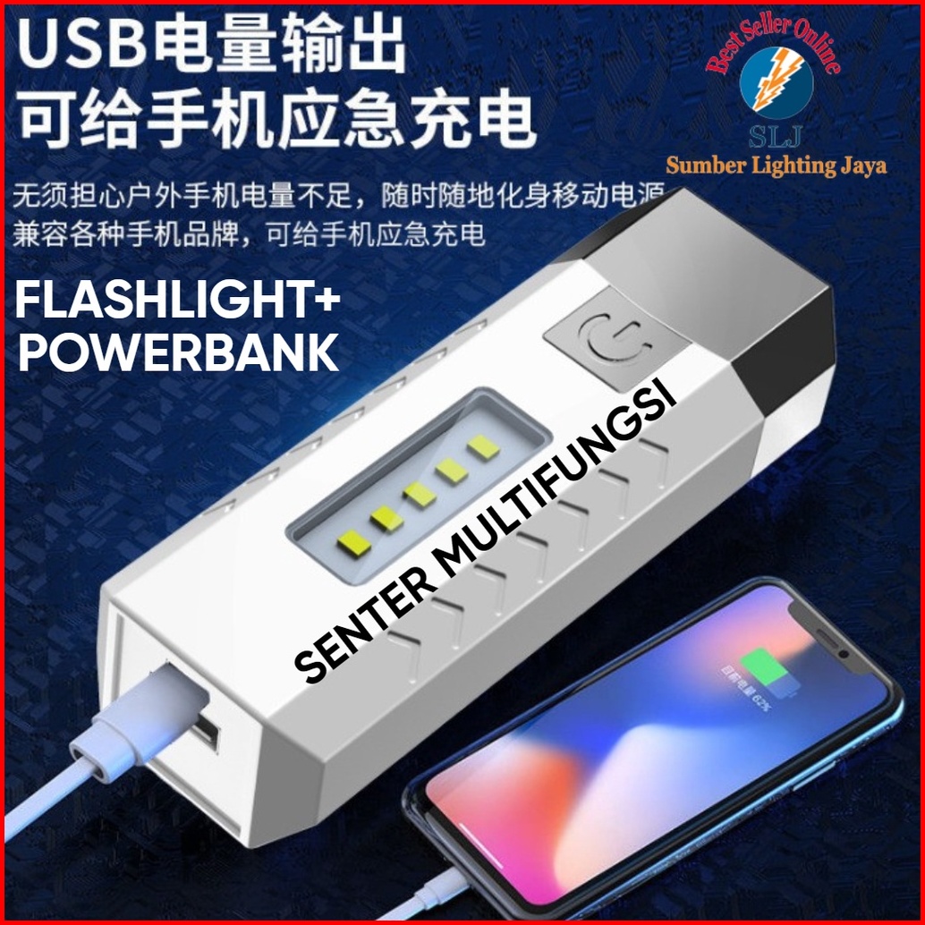 Ready Stok Senter Led 2 Mata Multifungsi Flashlight Dan Powerbank
