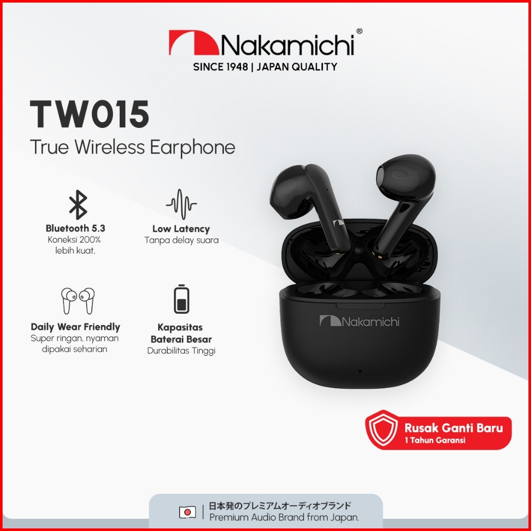 Nakamichi Tw015 Tws Earphone Low Latency Gaming Hd Earbuds Bluetooth Mic Black