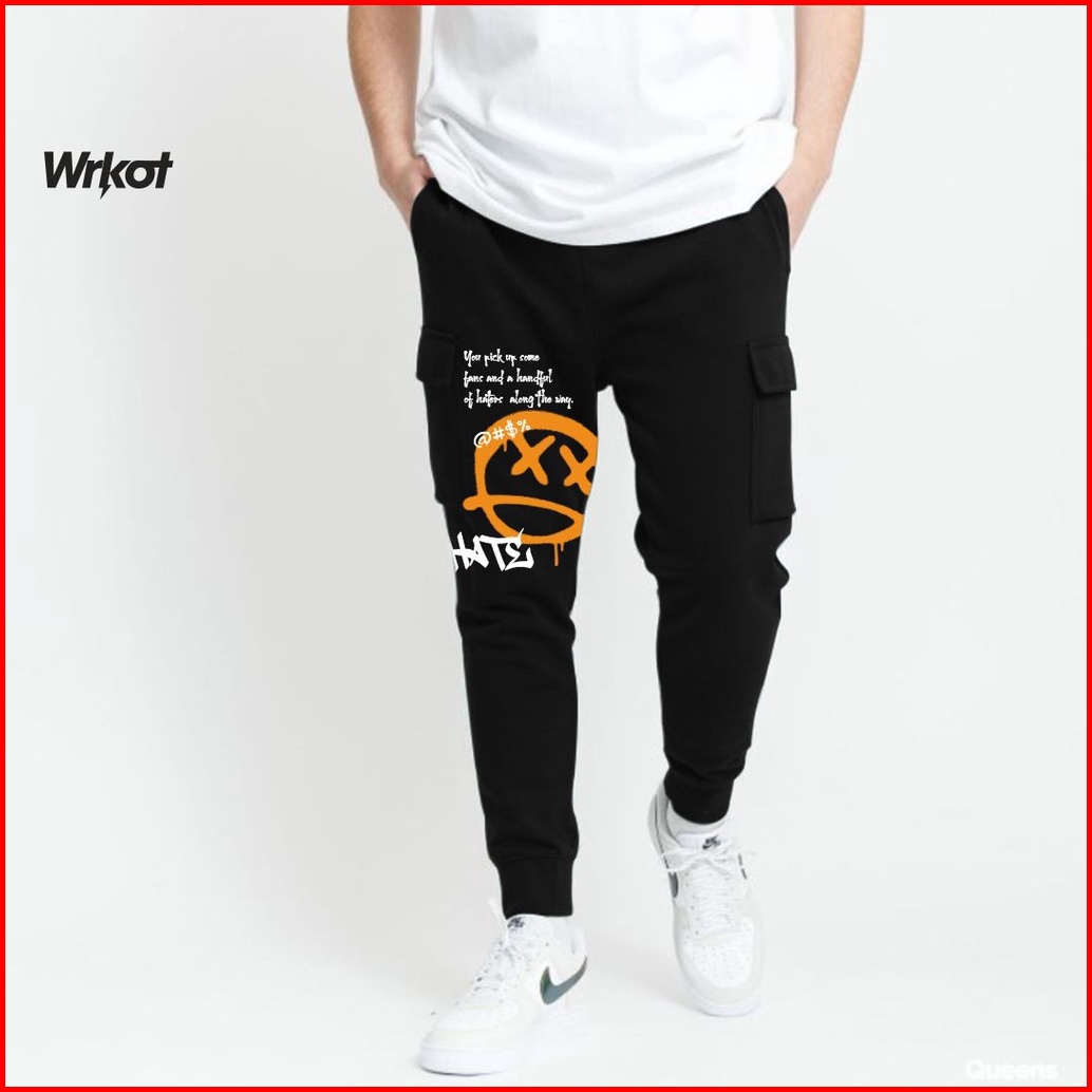 Workout Streetwear Celana Jogger Pants Cargo Sadness Black Pakaian Pria Dan Wanita