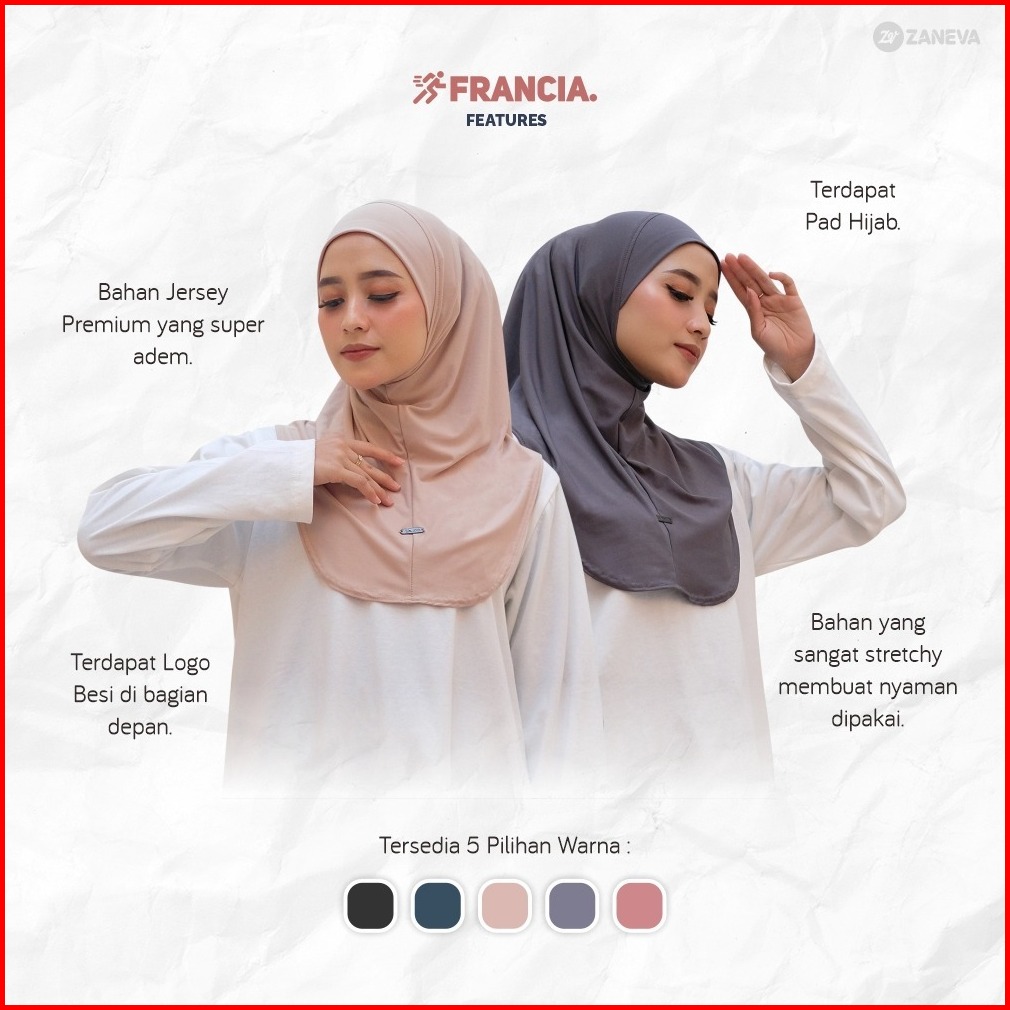 Zaneva - Francia Hijab Sport Jilbab Olahraga Terbaru Kekinian Modern Simple Adem