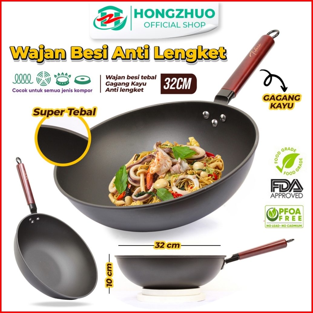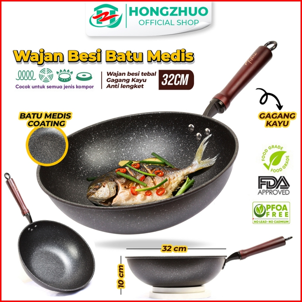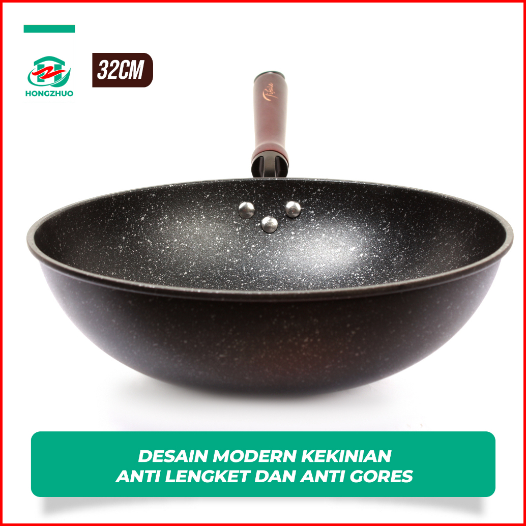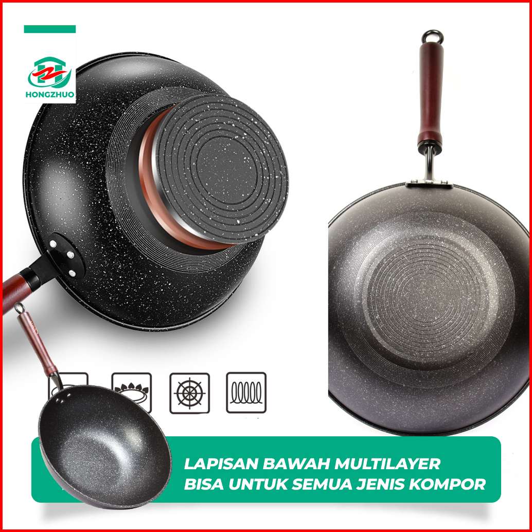 Tifale By Hongzhuo Wajan Maifan Wajan Batu Medis 32cm Anti Lengket Cocok Segala Jenis Kompor Gagang Kayu Premium Anti Le