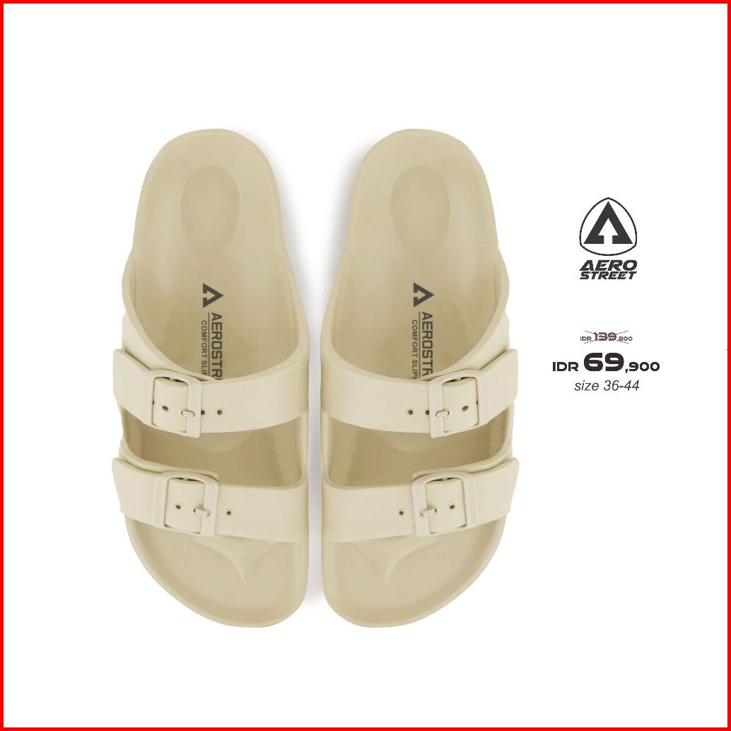 Aerostreet 36-44 Conifer Krem - Sandal Sendal Selop Slip On Casual Pria Wanita Aero Street 21bba0