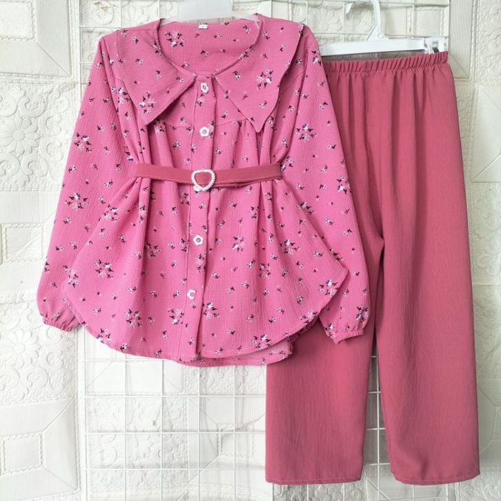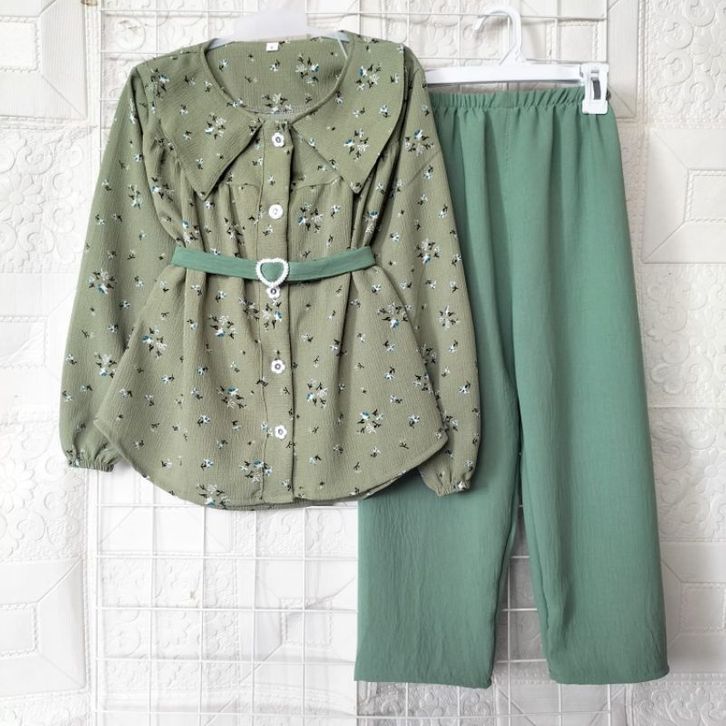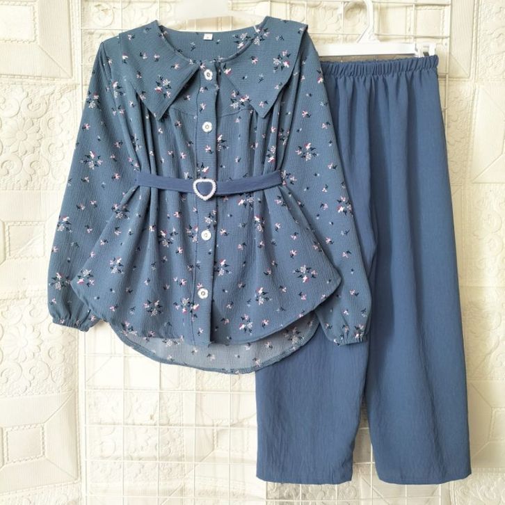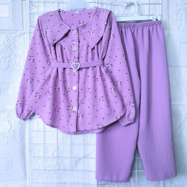 SETELAN ANAK PEREMPUAN BAHAN CRINKLE RATU MOTIF BUNGA KECIL MODEL MILEA BAJU BLOUSE CELANA PANJANG ANAK PEREMPUAN