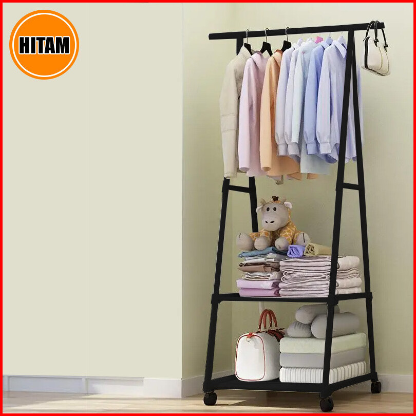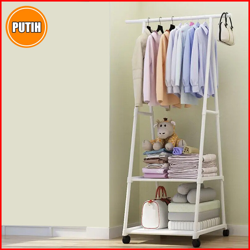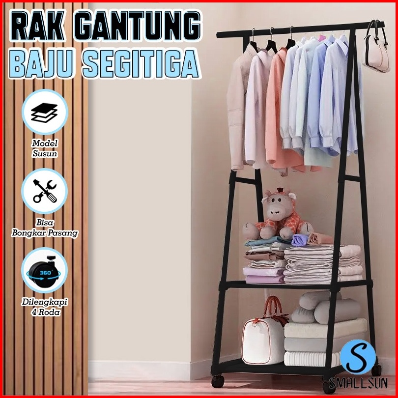 Ss Rak Gantungan Baju Buku Segitiga Triangle Serbaguna Stand Hanger Multifungsi Dengan Roda