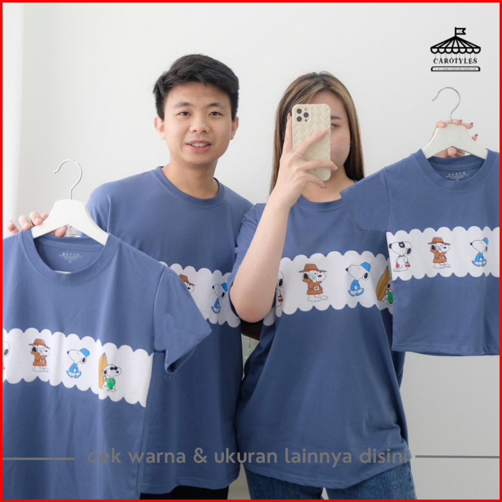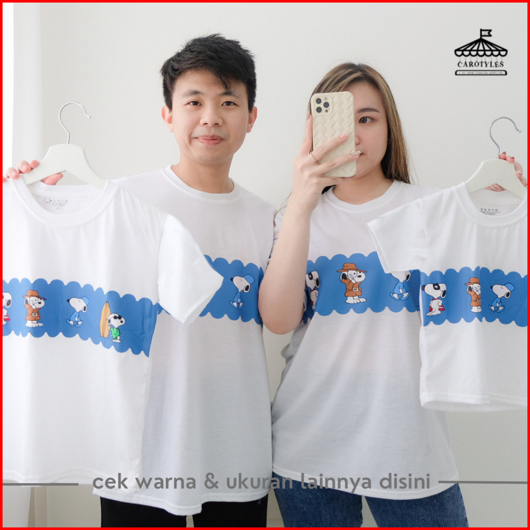 Carotyles Kaos Couple Keluarga Motif Snpy Garis Wanita Lengan Pendek Katun