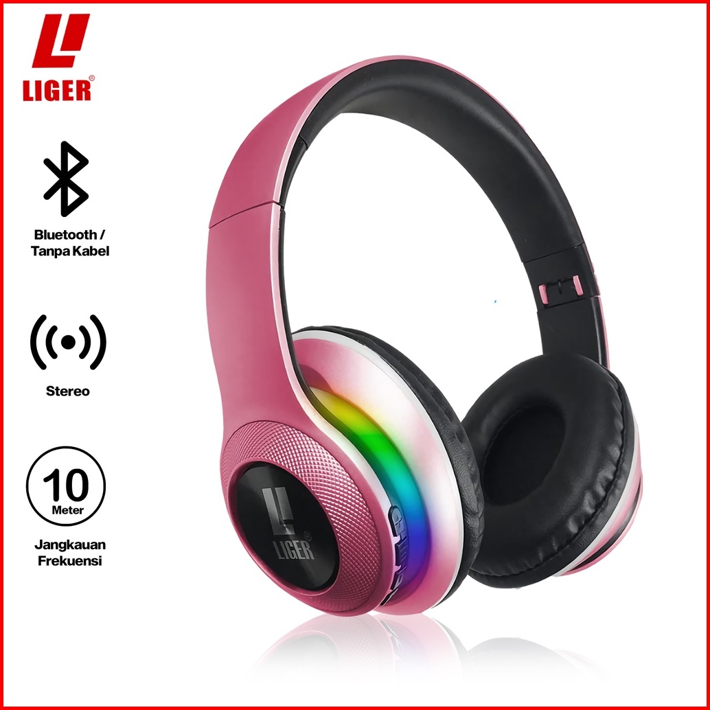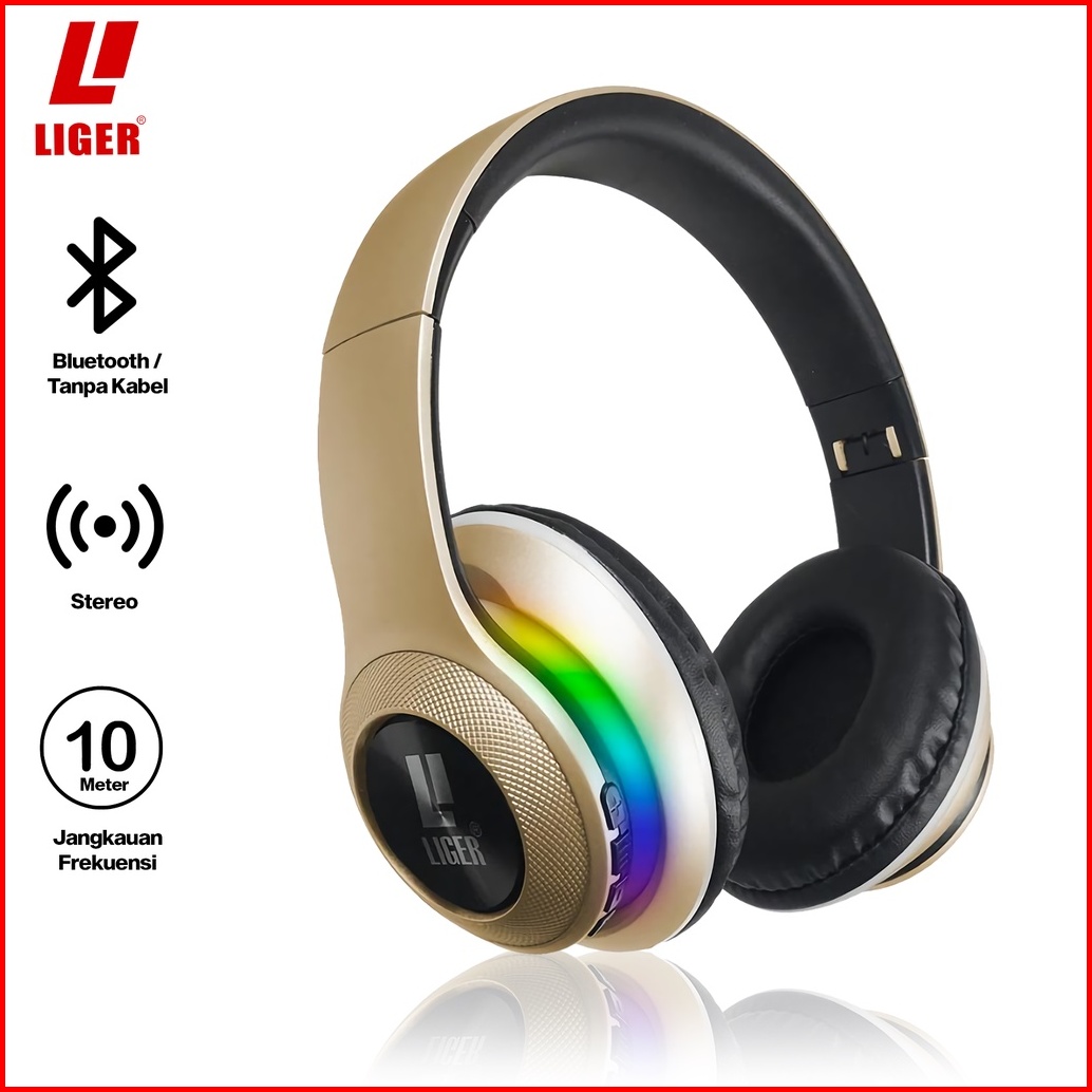 Liger Wireless Bluetooth Headphone Led Stereo Dengan Mic Headset Tanpa Kabel Hf L-919