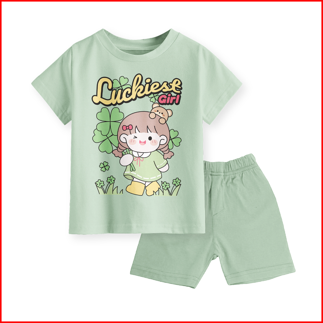 Setelan Kaos Anak Perempuan Terbaru Motif Luckiest Girl