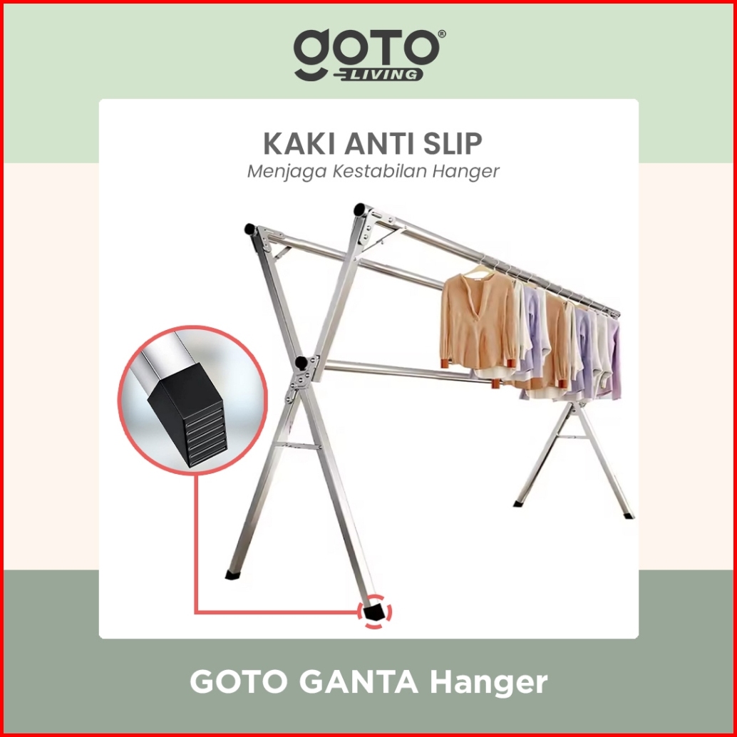 Goto Ganta Tiang Jemuran Hanger Baju Pakaian Handuk Lipat Portable
