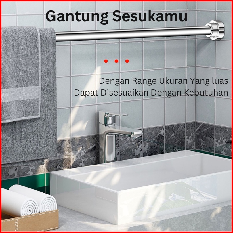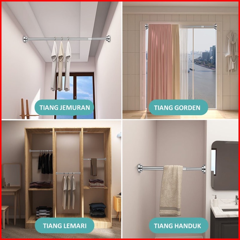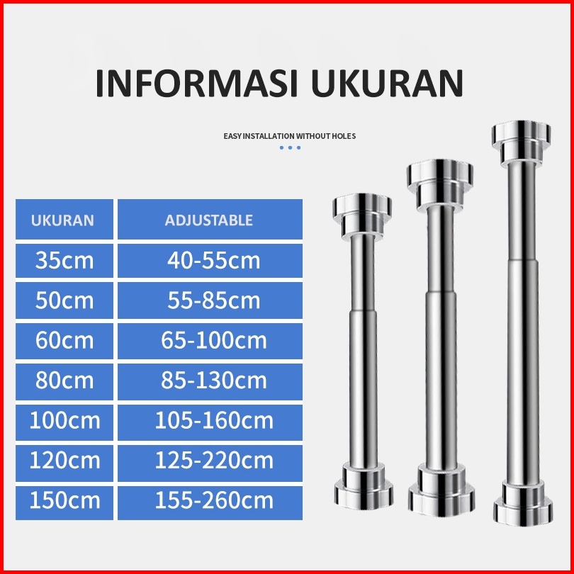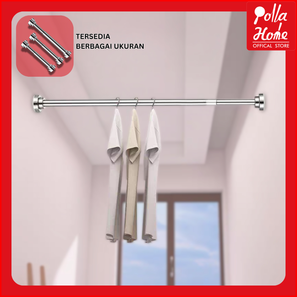 Ollahom Tiang Gorden Batang Tirai Fleksible Tanpa Paku Gantungan Serbaguna Teleskopik Gantungan Baju