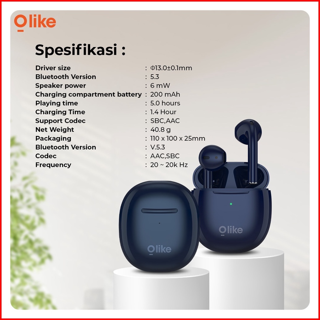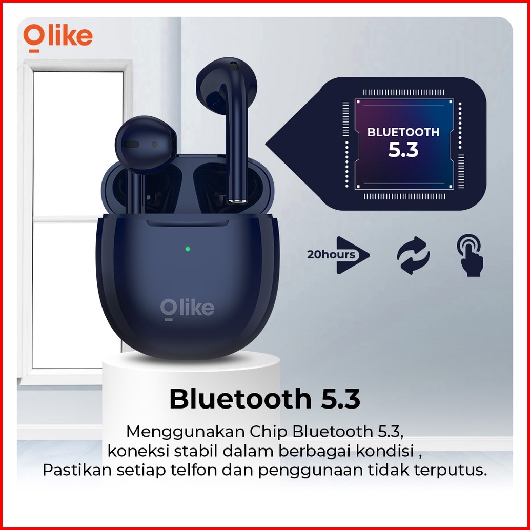 Olike Headset Bluetooth Earphone Wireless Tws Bluetooth 5.3 20 Play Hours Time 20 Fitur Touch Control Ej1 -