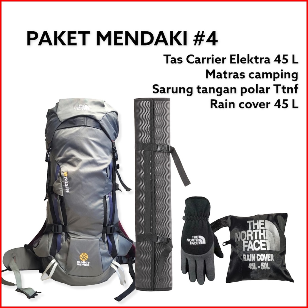 Paket Hemat 4 Paket Mendaki Tas Carier Elektra 45 L - Matras - Sarung Tangan - Rain Cover