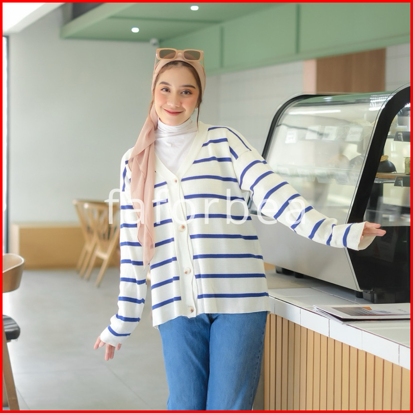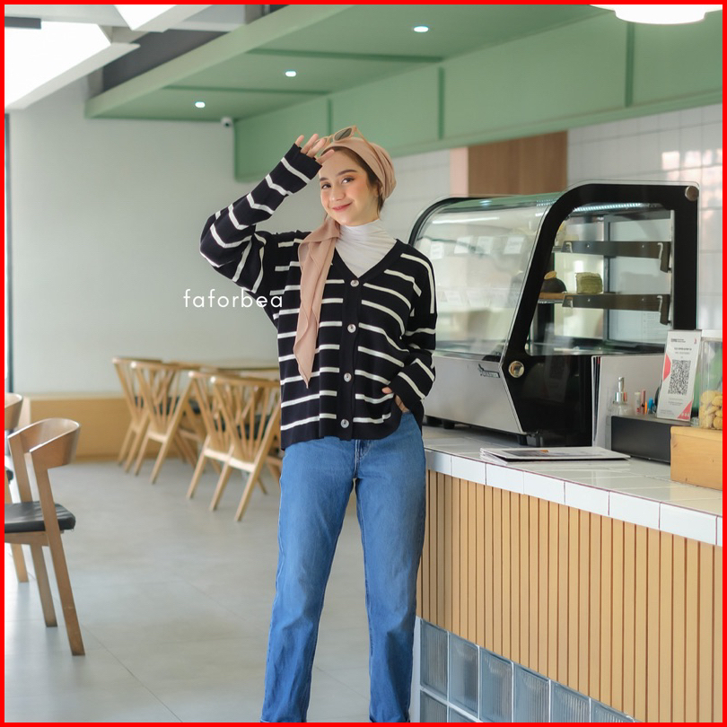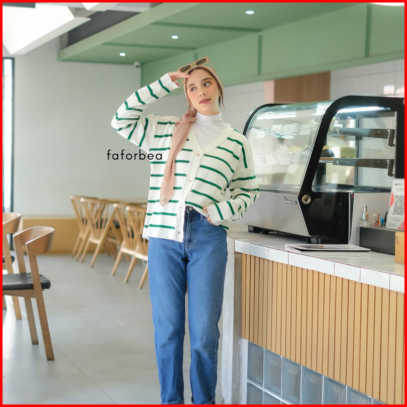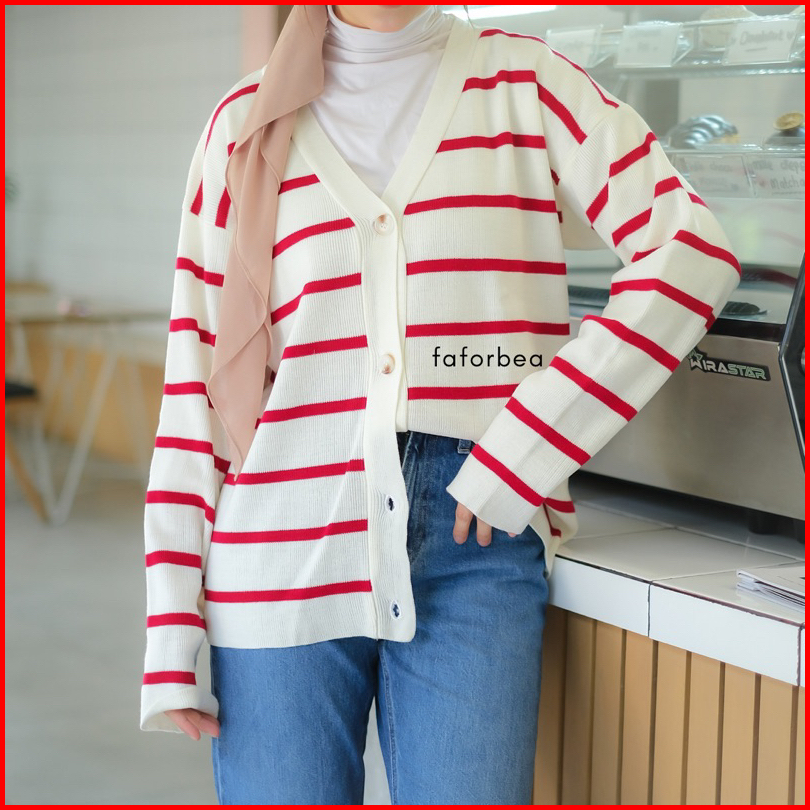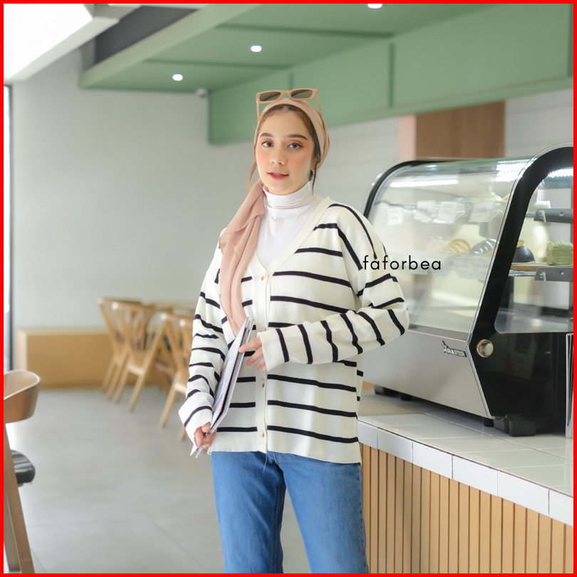 Faforbea Premium Striped Knit Cardigan - Outer Rajut