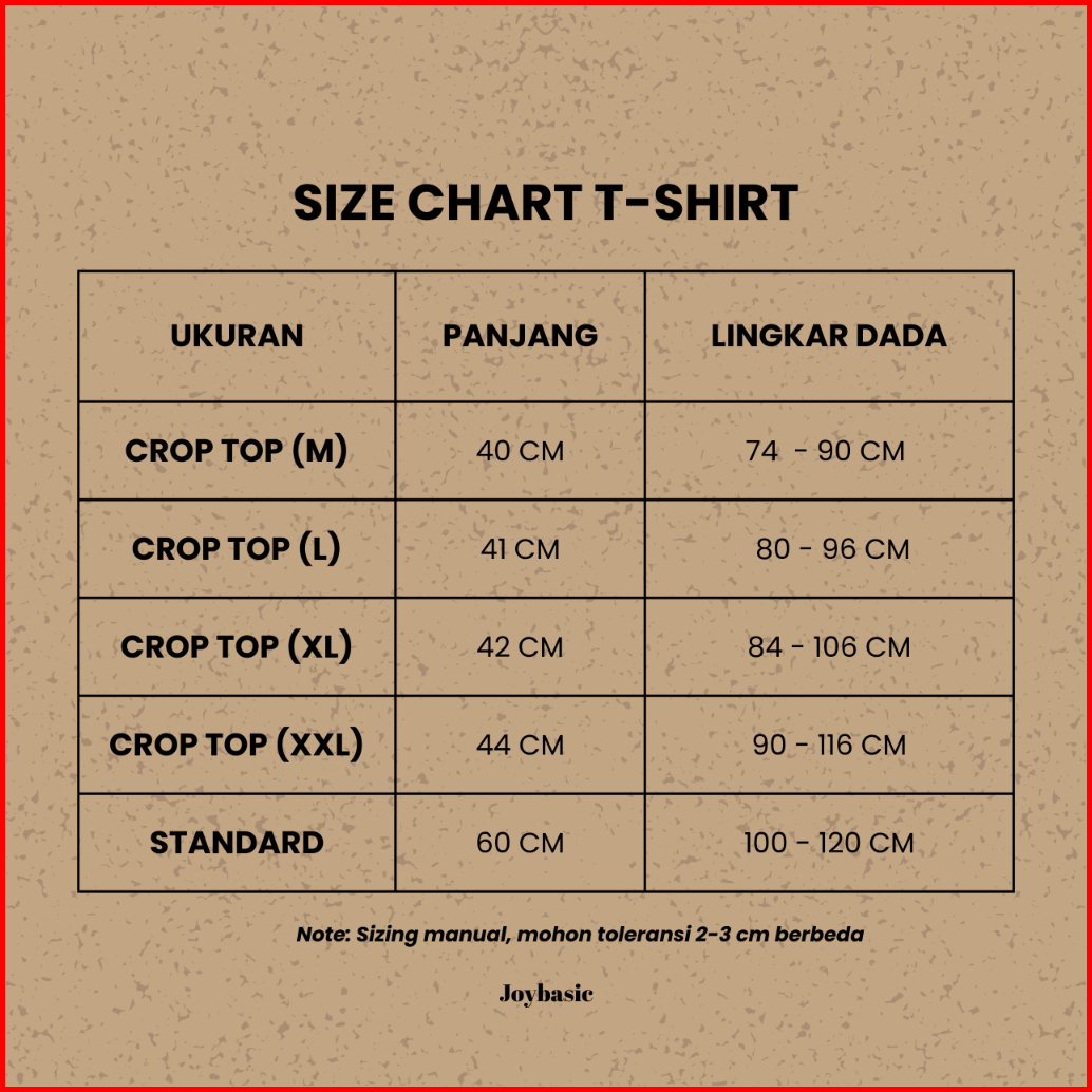 Standar - All Size, Crop Top - Size M, Crop Top - Size L, Crop Top - Size XL, Crop Top - Size 2XL