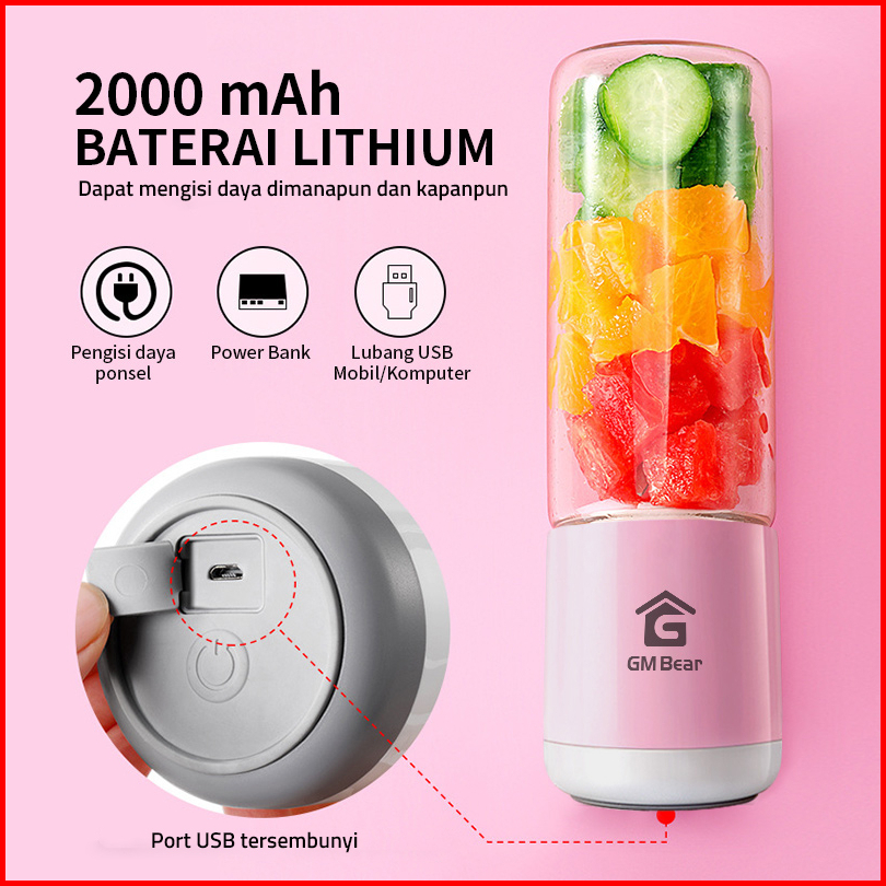 Gm Bear Blender Kaca Juicer Portable 4 Mata Pisau P0138 - Portable Blender Sni