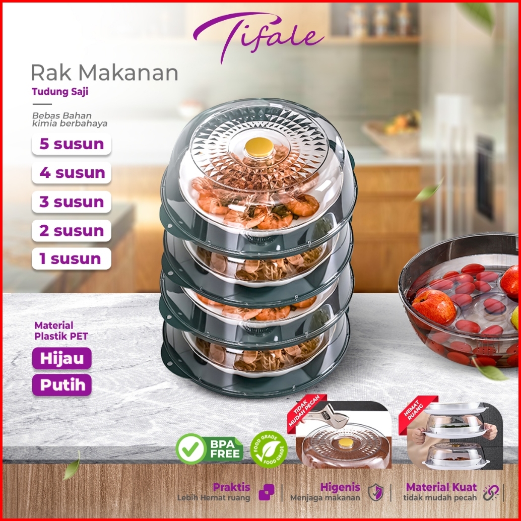 Tifale Tudung Saji Susun Kristal Anti Pecah Rak Untuk Menyimpan Makanan Food Pack Storage Plastik Rak Susun Piring Makan