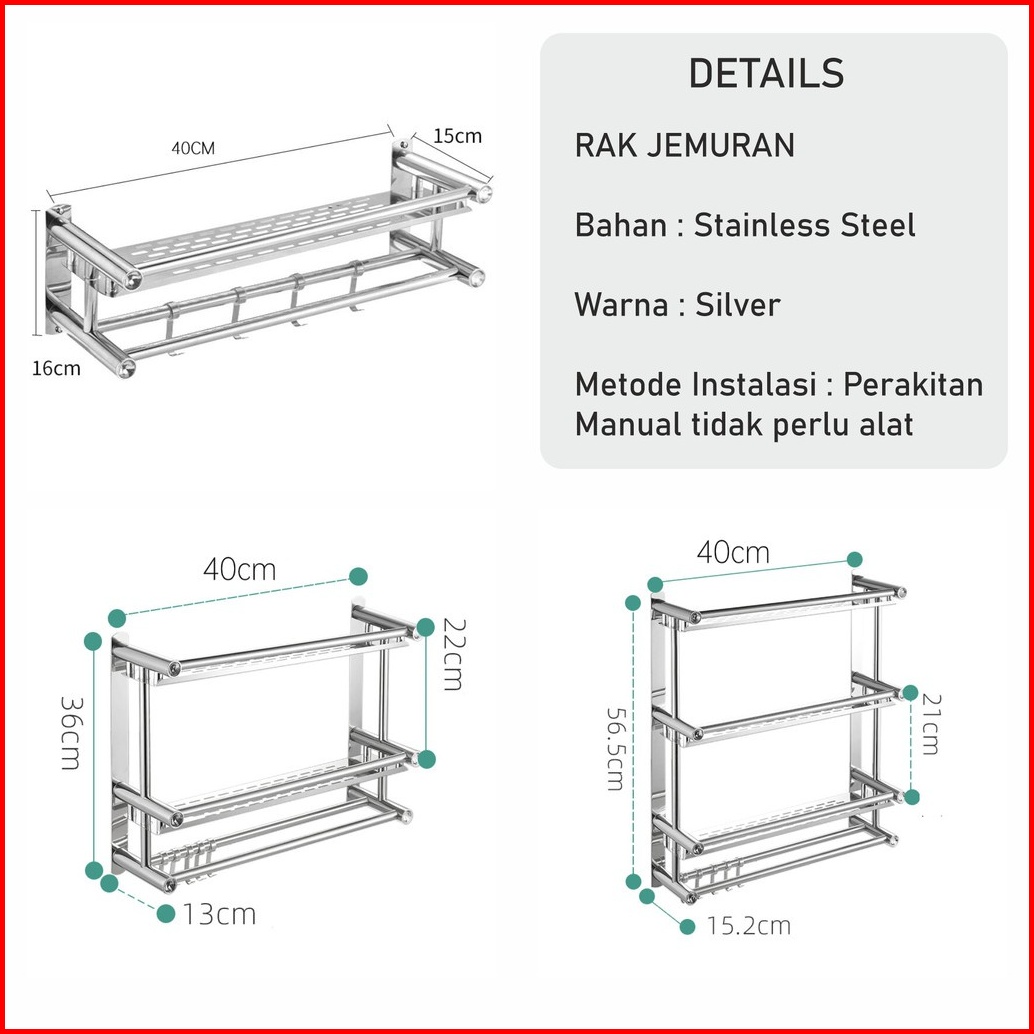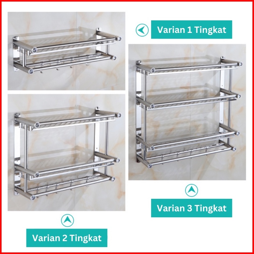 Olla Hom Rak Kamar Mandi Dinding Rak Bumbu Dapur Stainls Steel