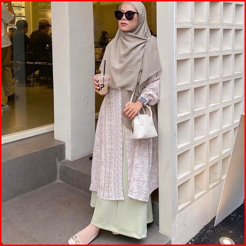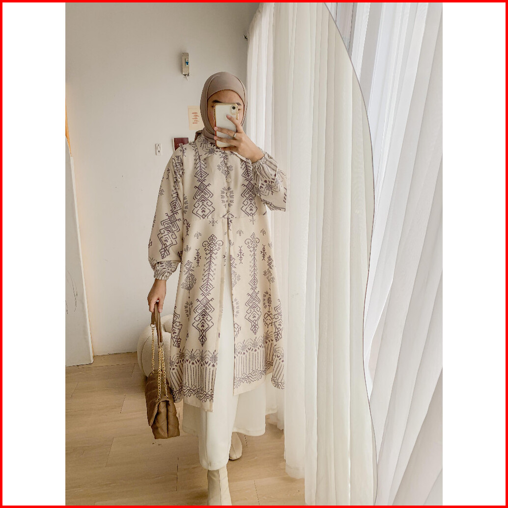 Syamaita - Tamara Outer Tunik Motif Batik Modern Kancing Busui Dan Wudhu Friendly Material Foam Emboss Premium Muslim