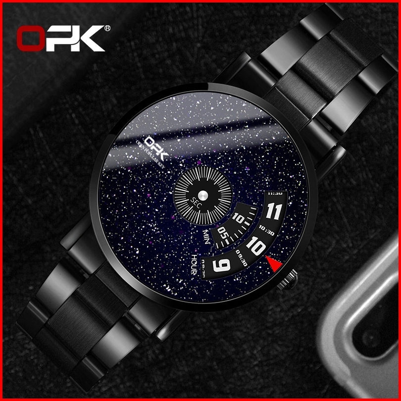 Opk Jam Tangan Pria Anti Air Original Fashion Unik Starry Night Hitam Stainless Steel Waterproof Man Watch Model 8109