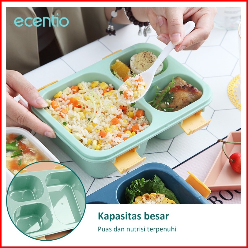 Ecentio Kotak Makan Anti Tumpah Lunch Box Set 850ml Anti Tumpah Kotak Makan 3 4 Grid