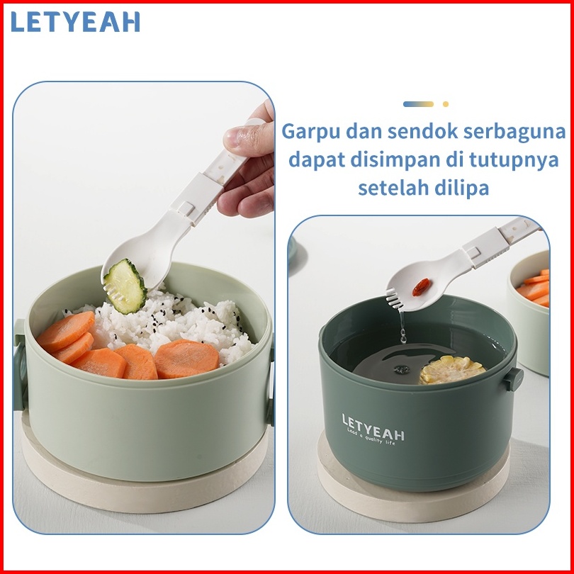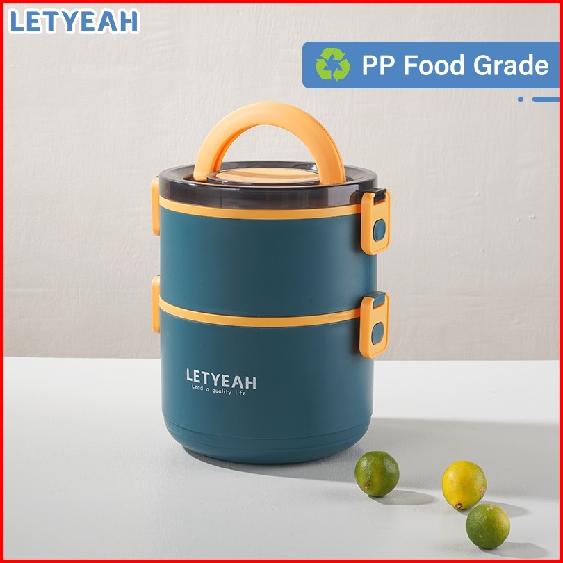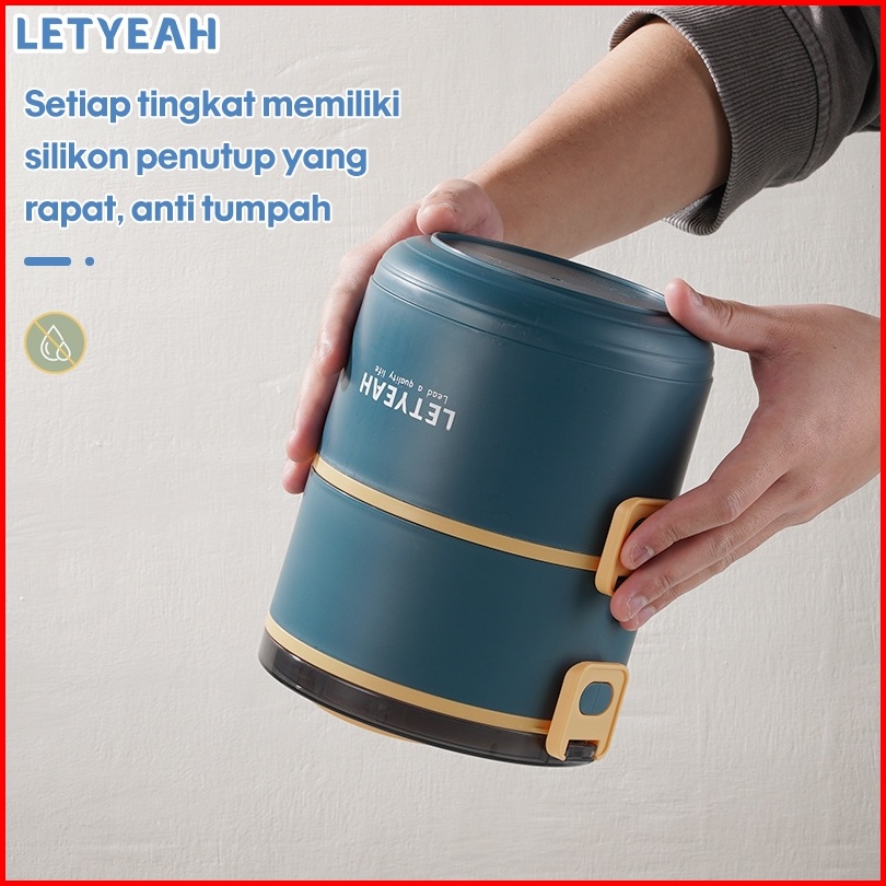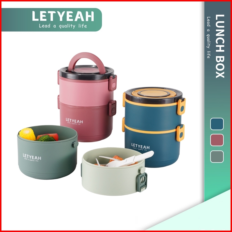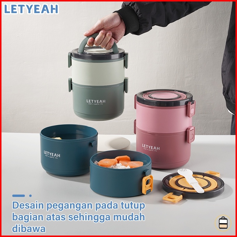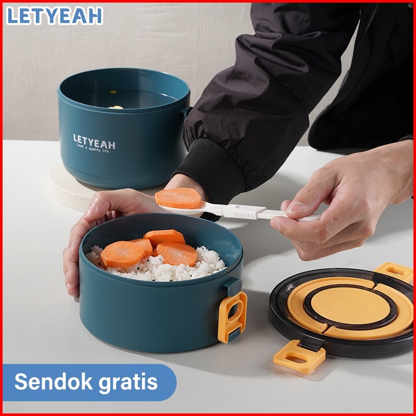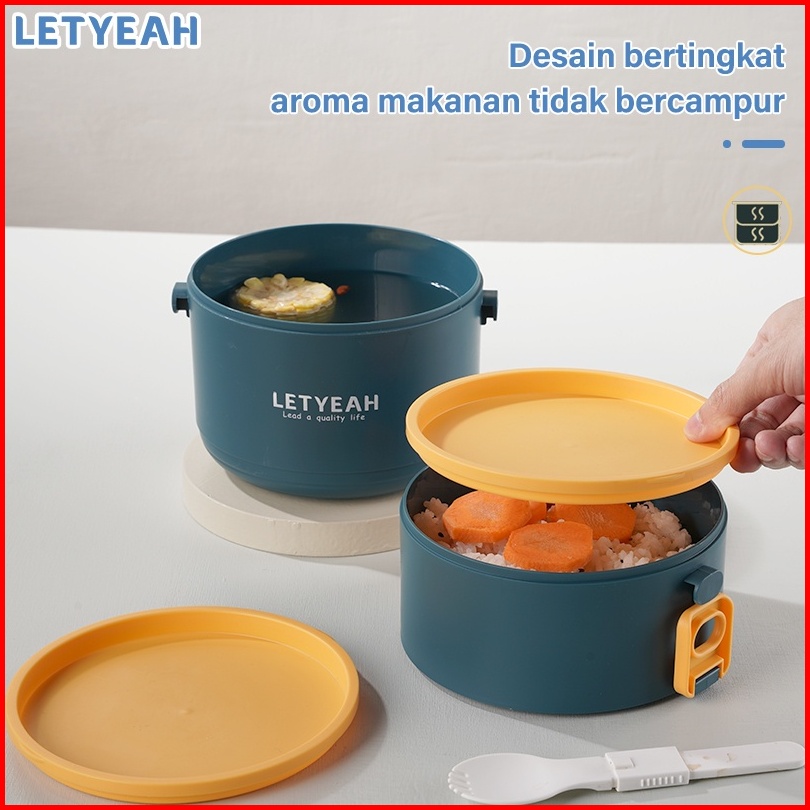 Letyeah Double-layer Portable Lunch Box 1600ml Anti Bocor Kotak Bekal Free Sendok