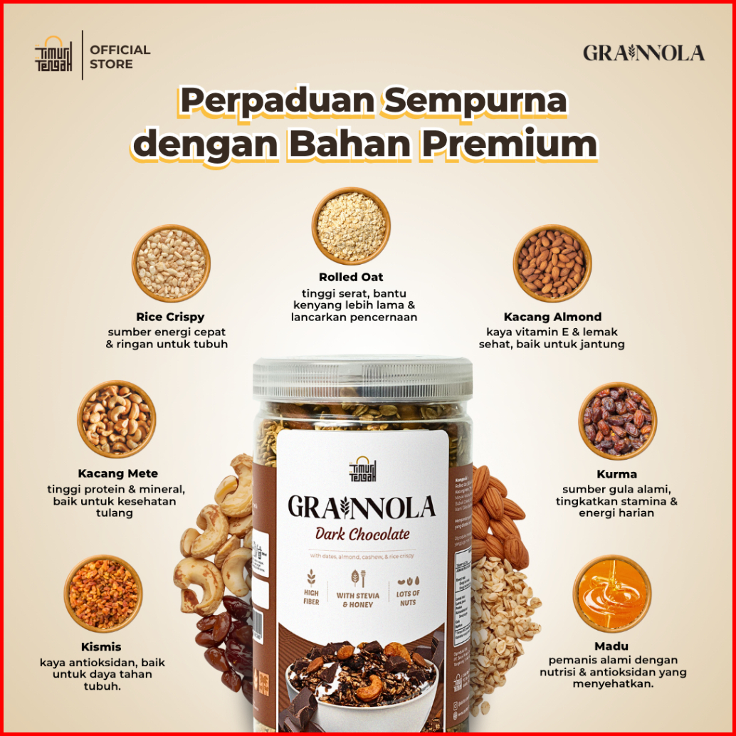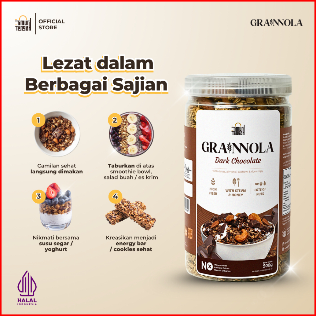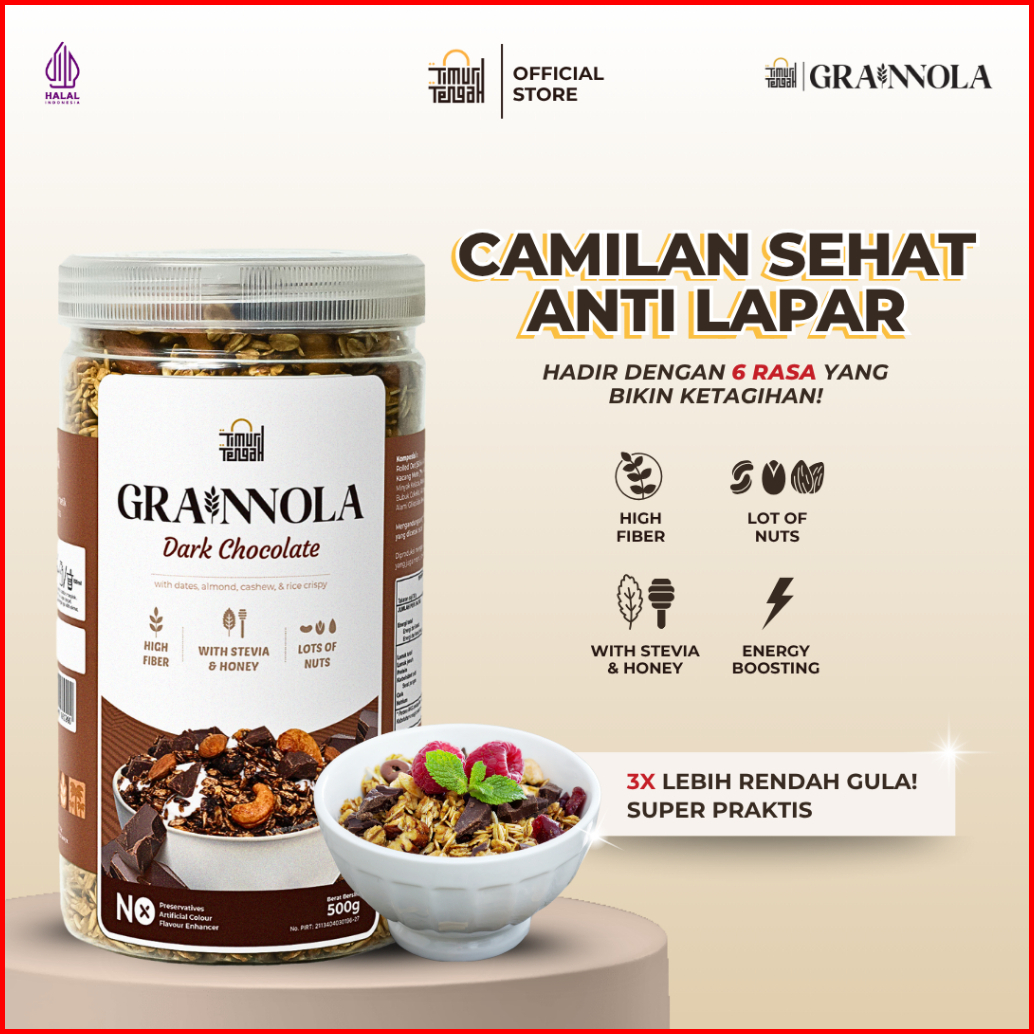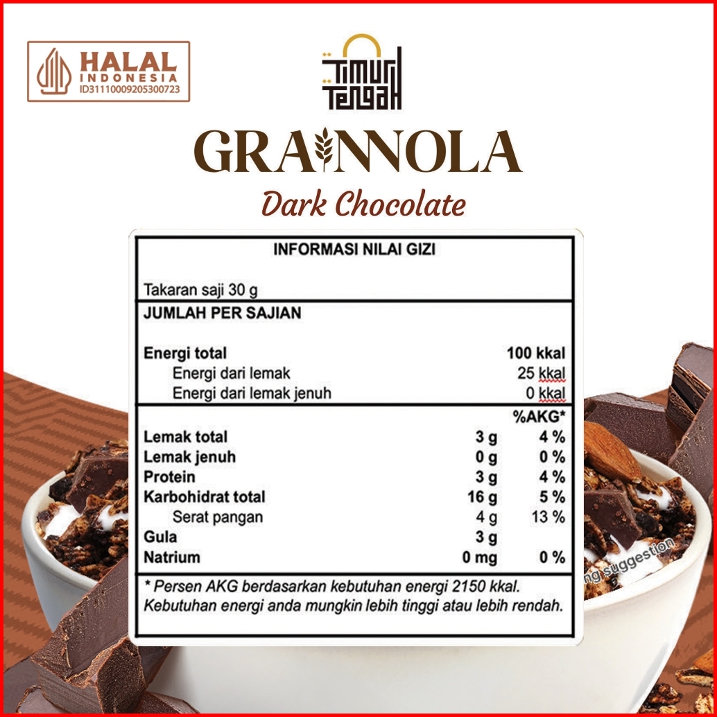 Timur Tengah Grainnola Dark Chocolate 500 Gr Granola Cokelat Coklat Camilan Sereal Makanan Sehat Rendah Kalori