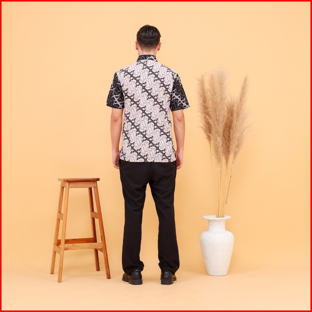 Batik Trusmi Hem Kemeja Batik Pria Lengan Pendek Motif Parang Hitam Dng Untuk Kerja