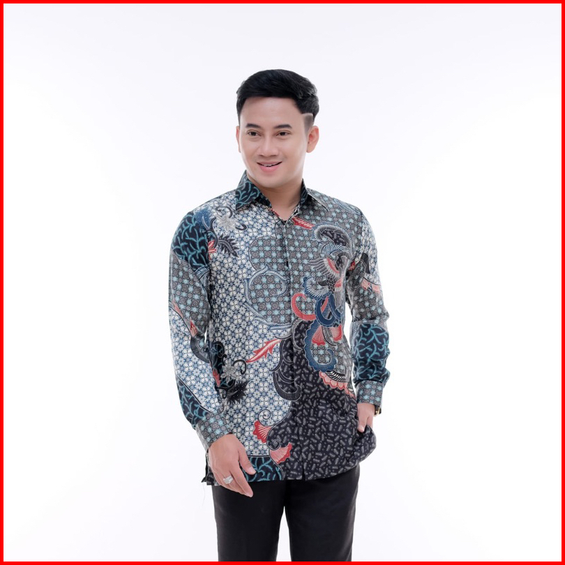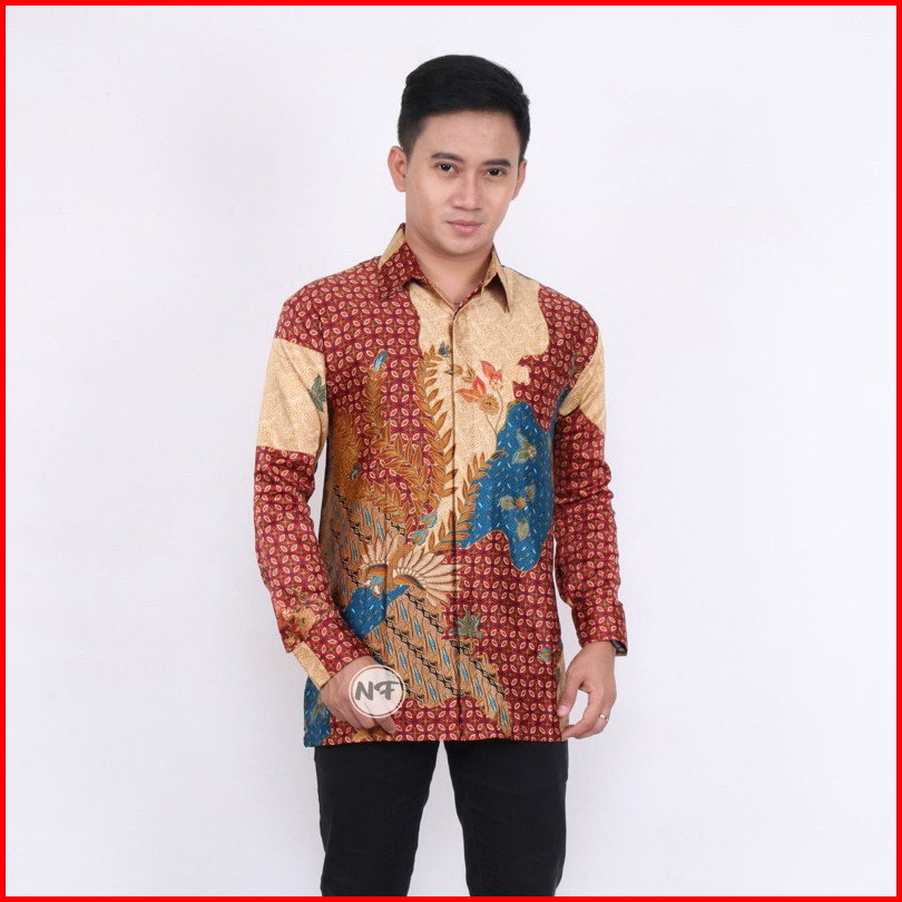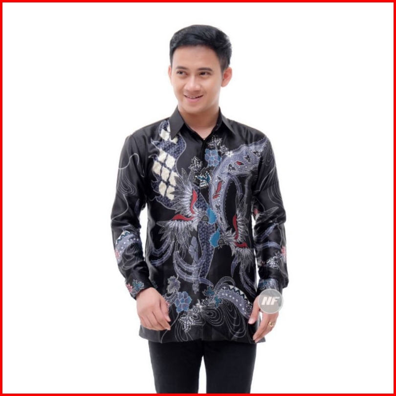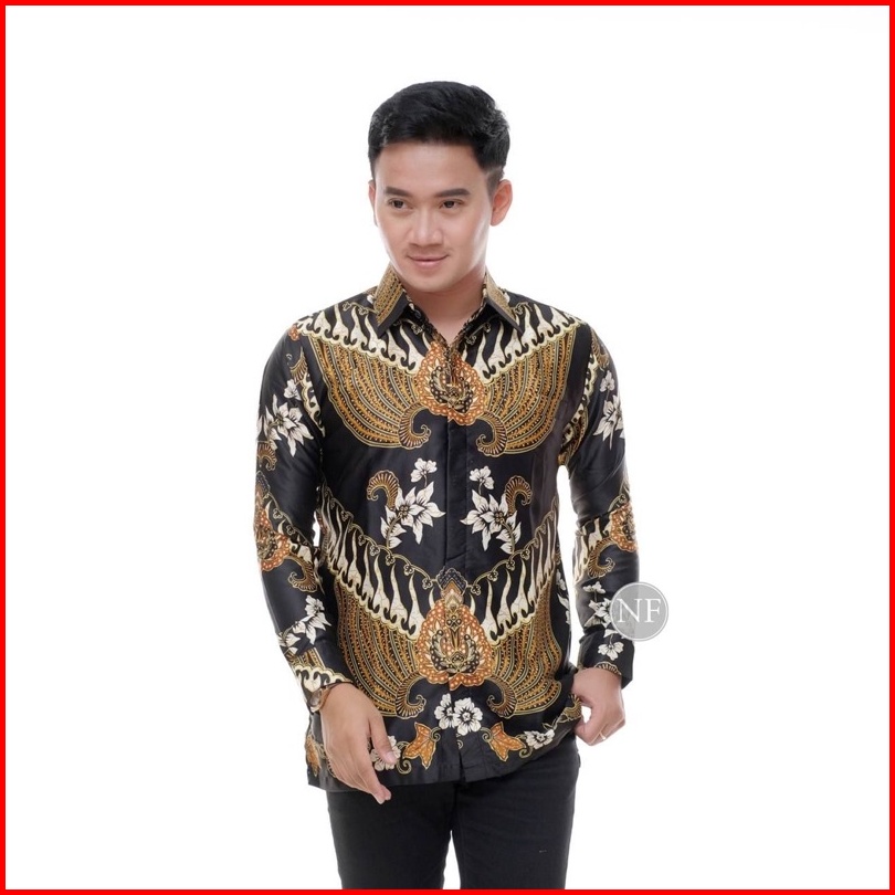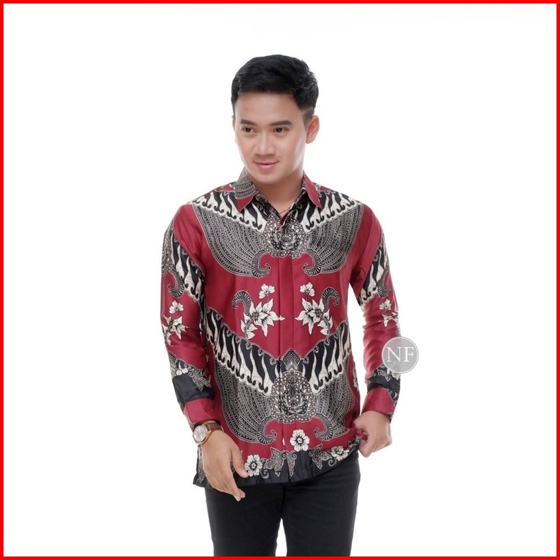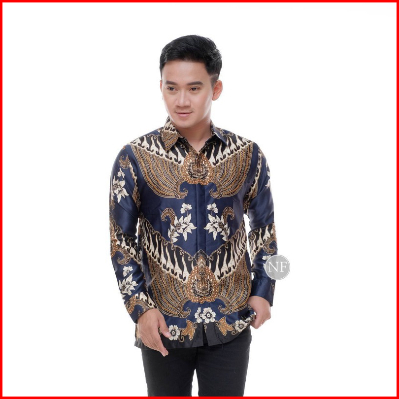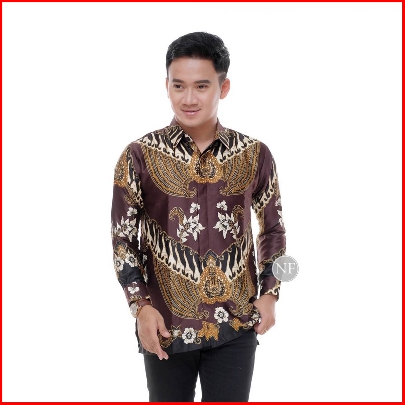 Kemeja Batik Semi Sutra Silky Premium Berfuring Lengan Panjang Clasik Sutra Xxl Fashion Batik Pria