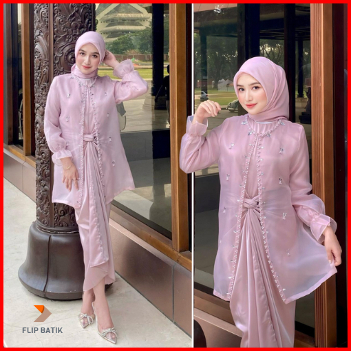 One Set Wanita Kekinian Outer Organza Premium Setelan Kondangan Rok Lilit Outfit Kondangan Kekinian Baju Setelan Wanita