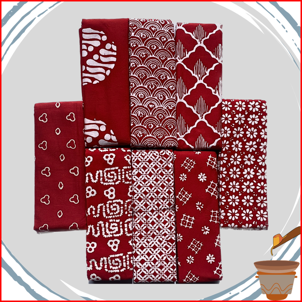 Kain Batik Cap Dan Sarung Batik Cap - Ukuran 2 Meter Edisi Warna Merah Batik Tasik - Batik Garutan